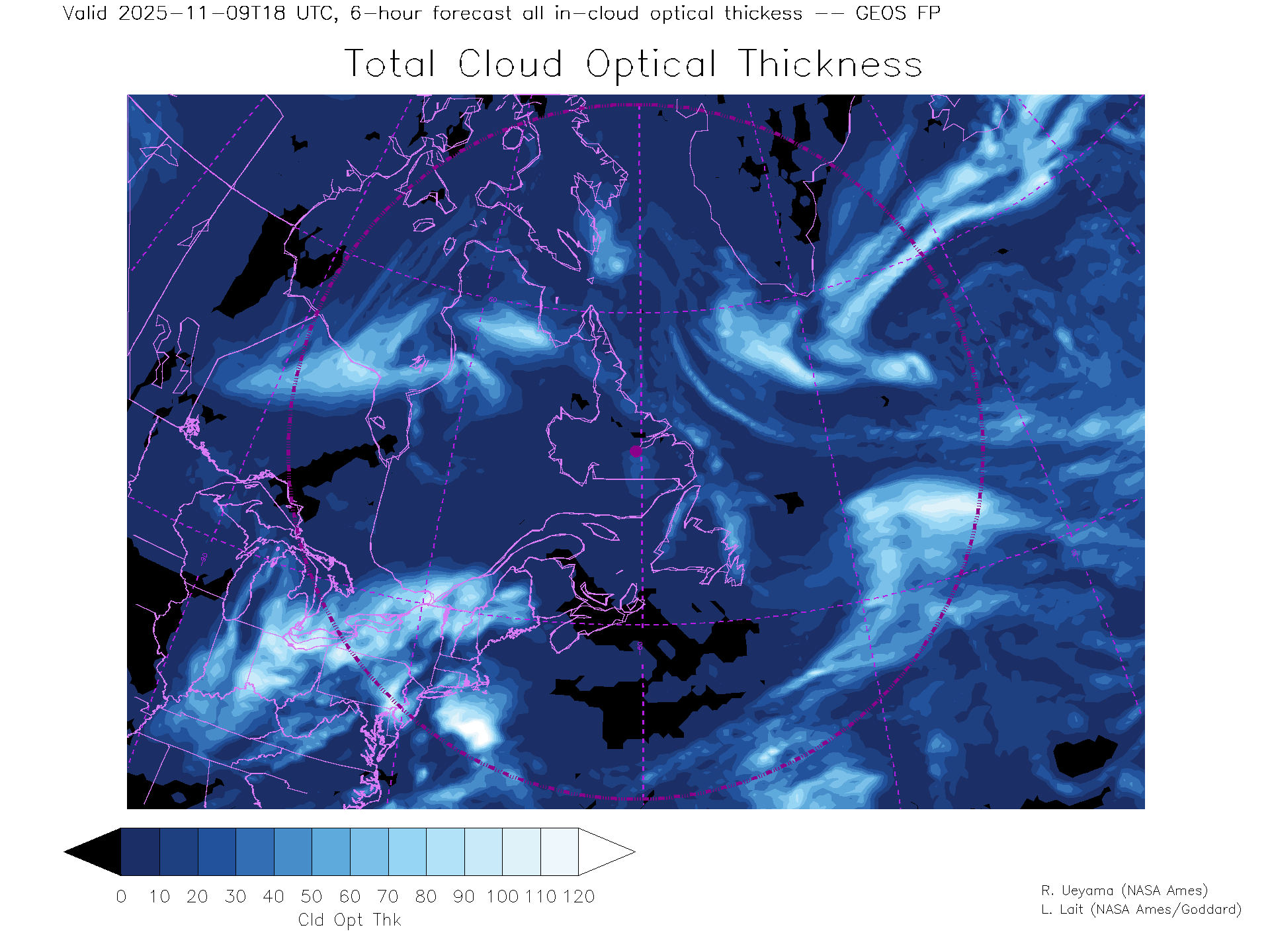 GEOS Forecast Total Cloud Optical thickness