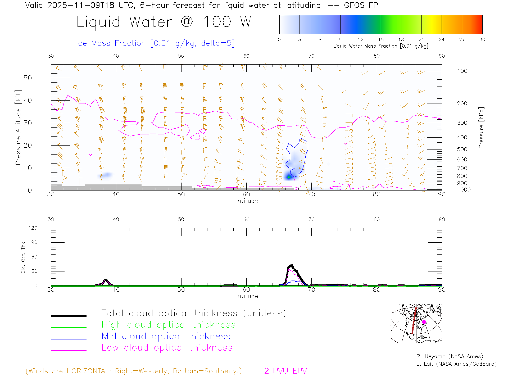 GEOS Forecast Cloud Water Content X-Section (100 W)