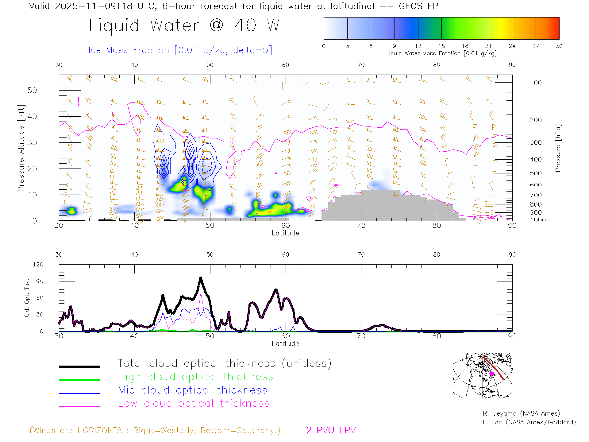 GEOS Forecast Cloud Water Content X-Section (40 W)