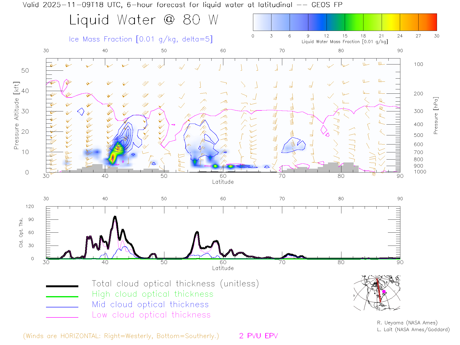 GEOS Forecast Cloud Water Content X-Section (80 W)