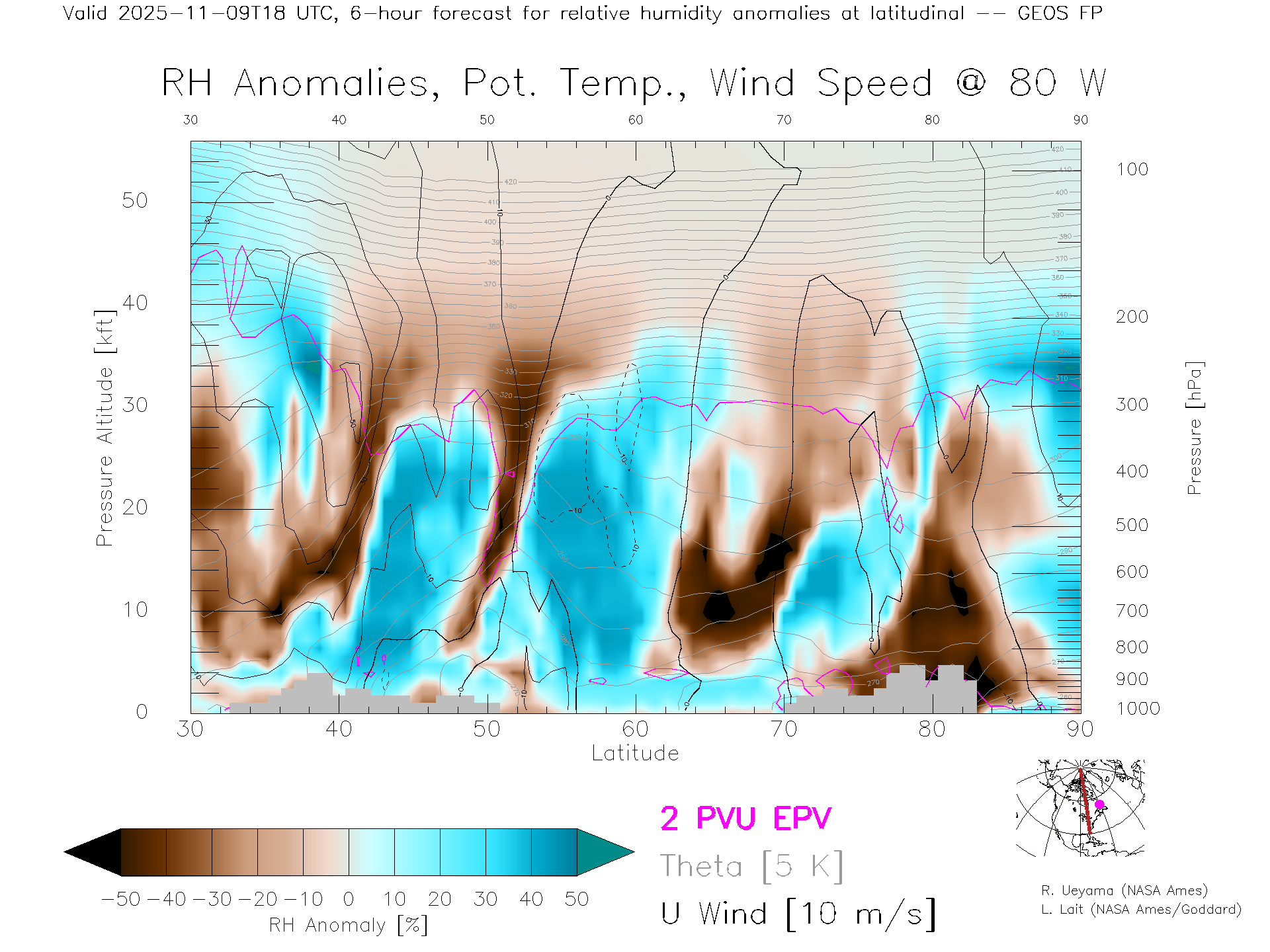 GEOS Forecast Rel. Hum. X-Section (80 W)