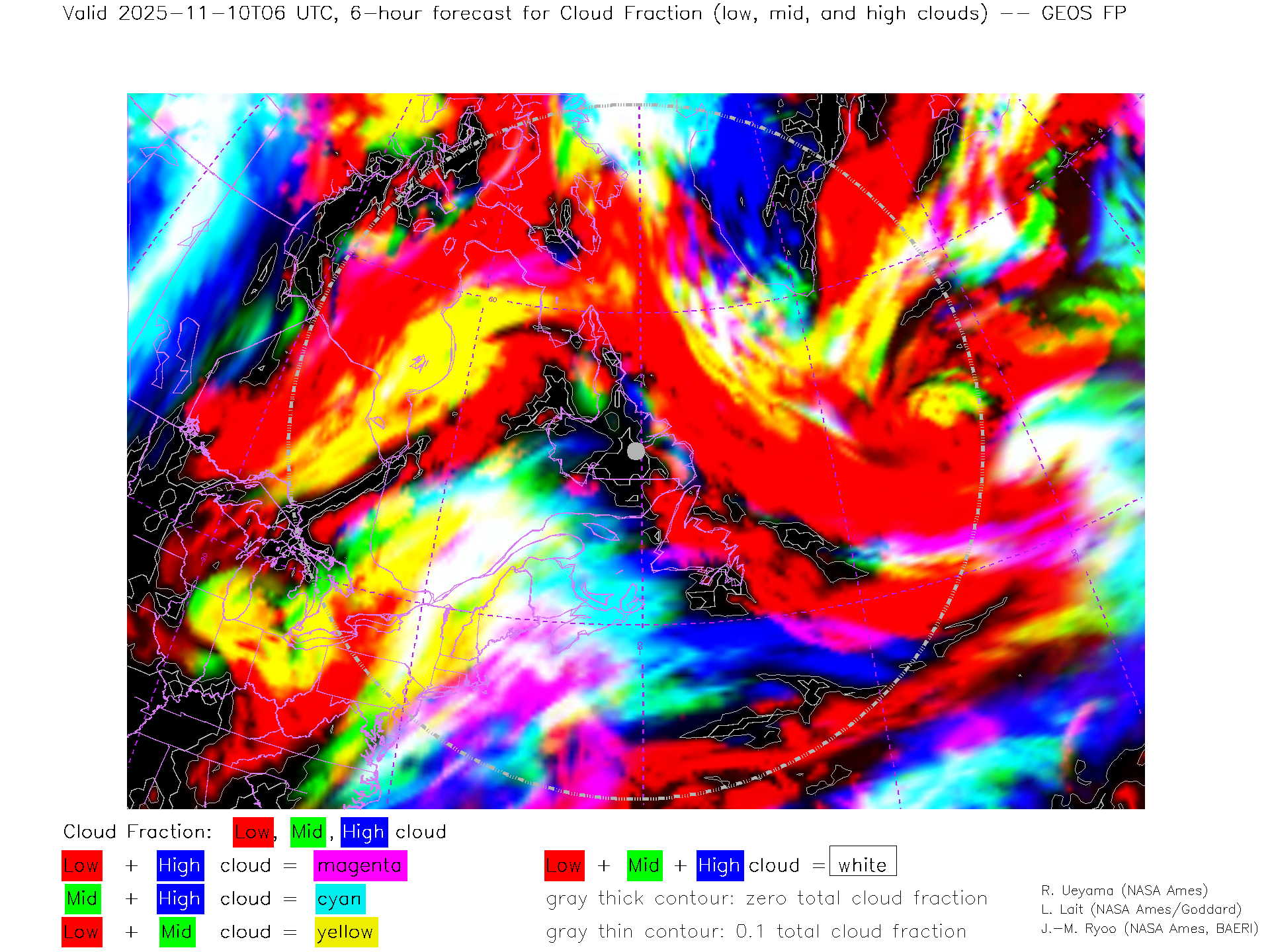 GEOS Forecast Low-, Mid- and High-level Cloud Fraction