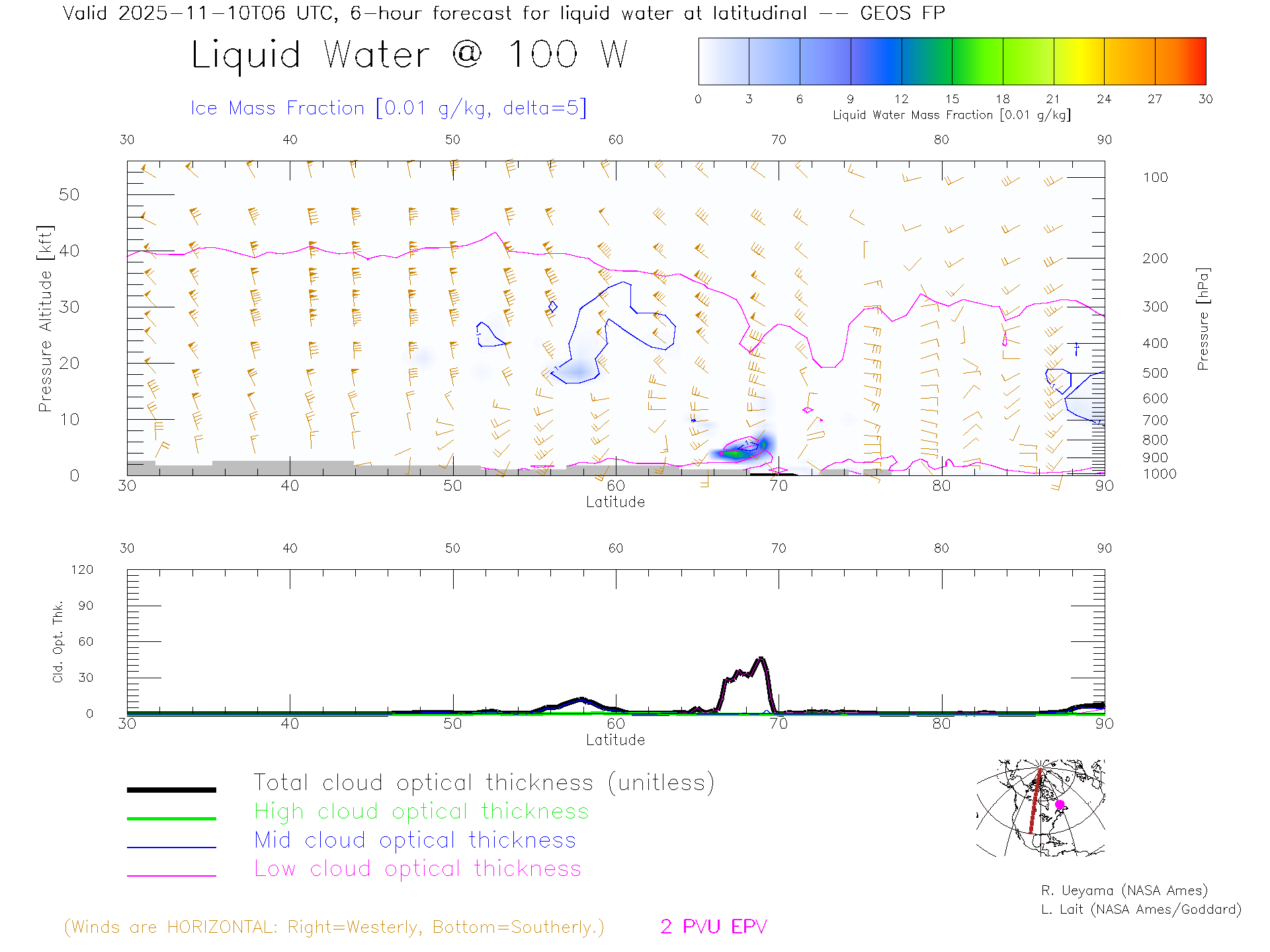 GEOS Forecast Cloud Water Content X-Section (100 W)