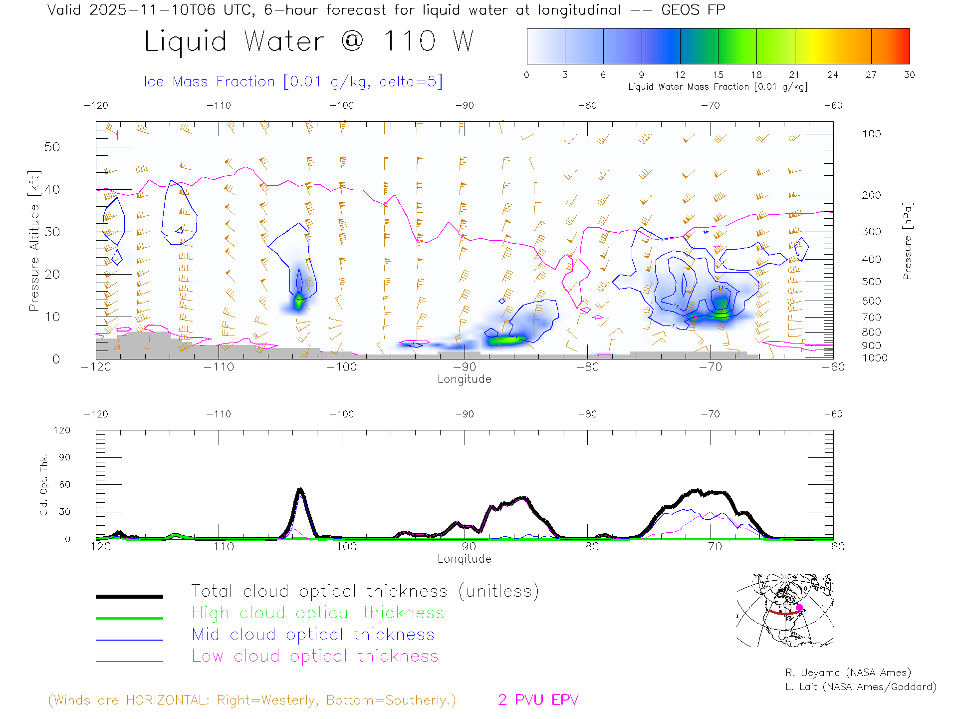 GEOS Forecast Cloud Water Content X-Section (50 N)