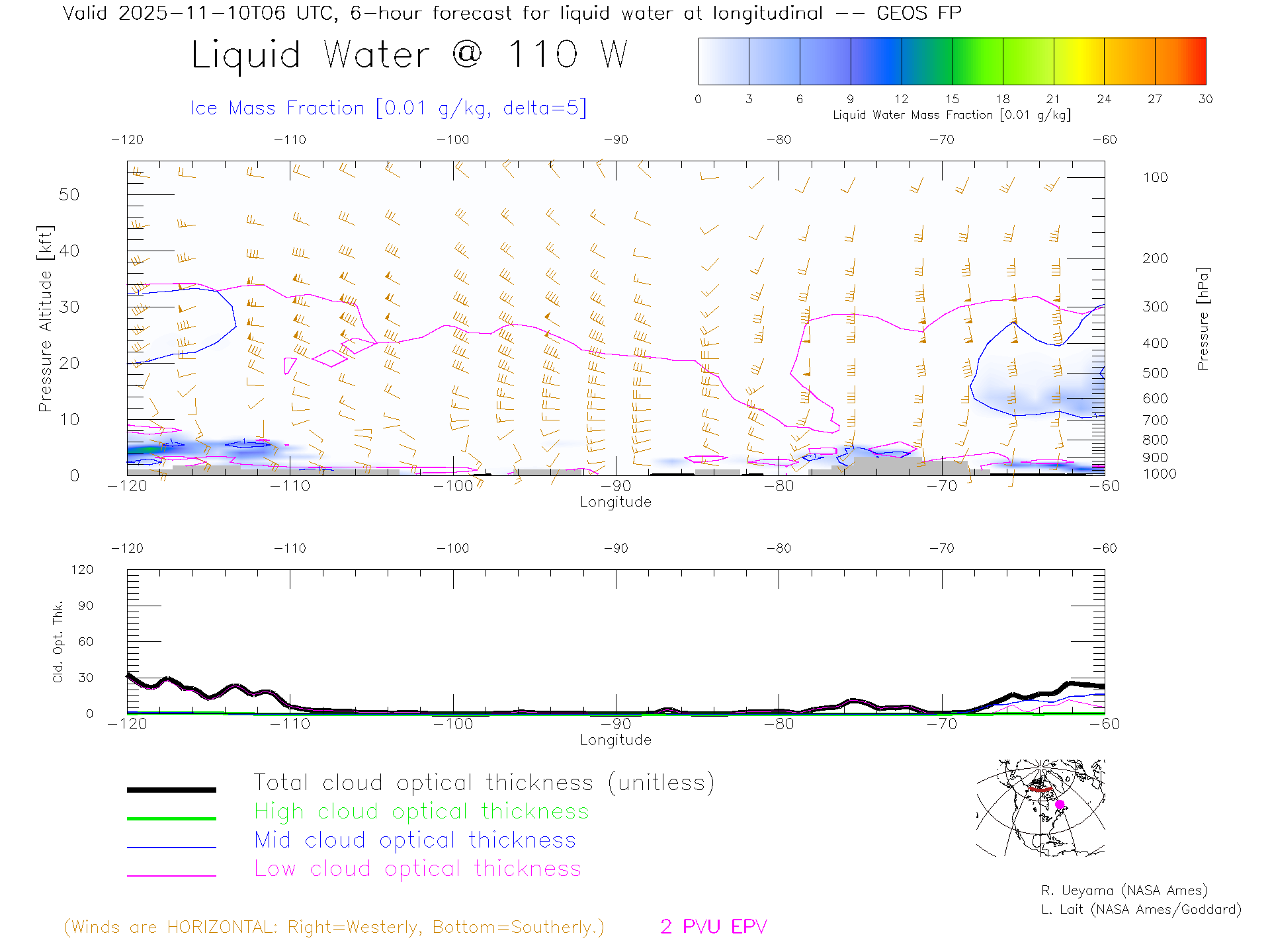 GEOS Forecast Cloud Water Content X-Section (70 N)