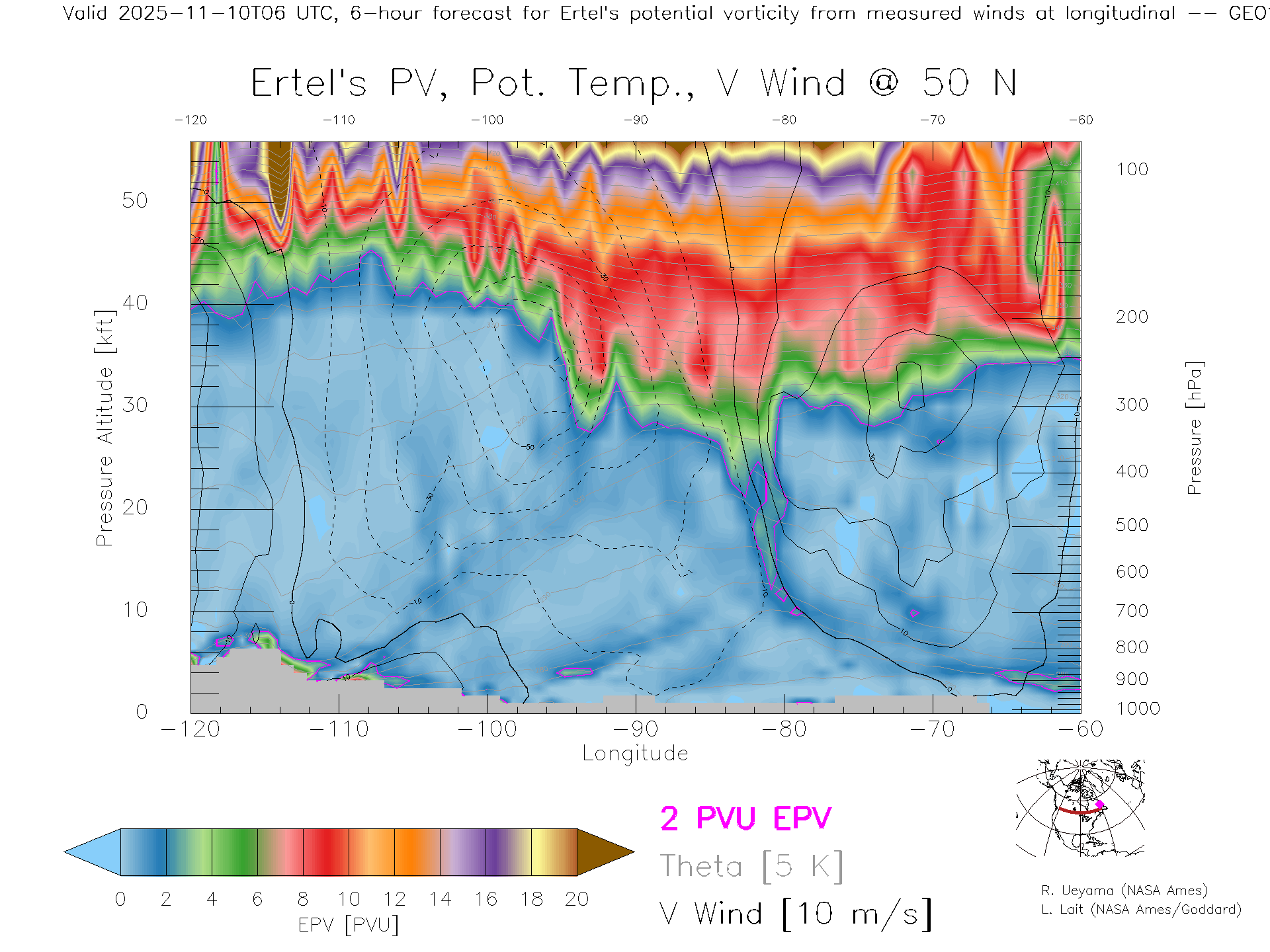GEOS Forecast PV X-Section (50 N)