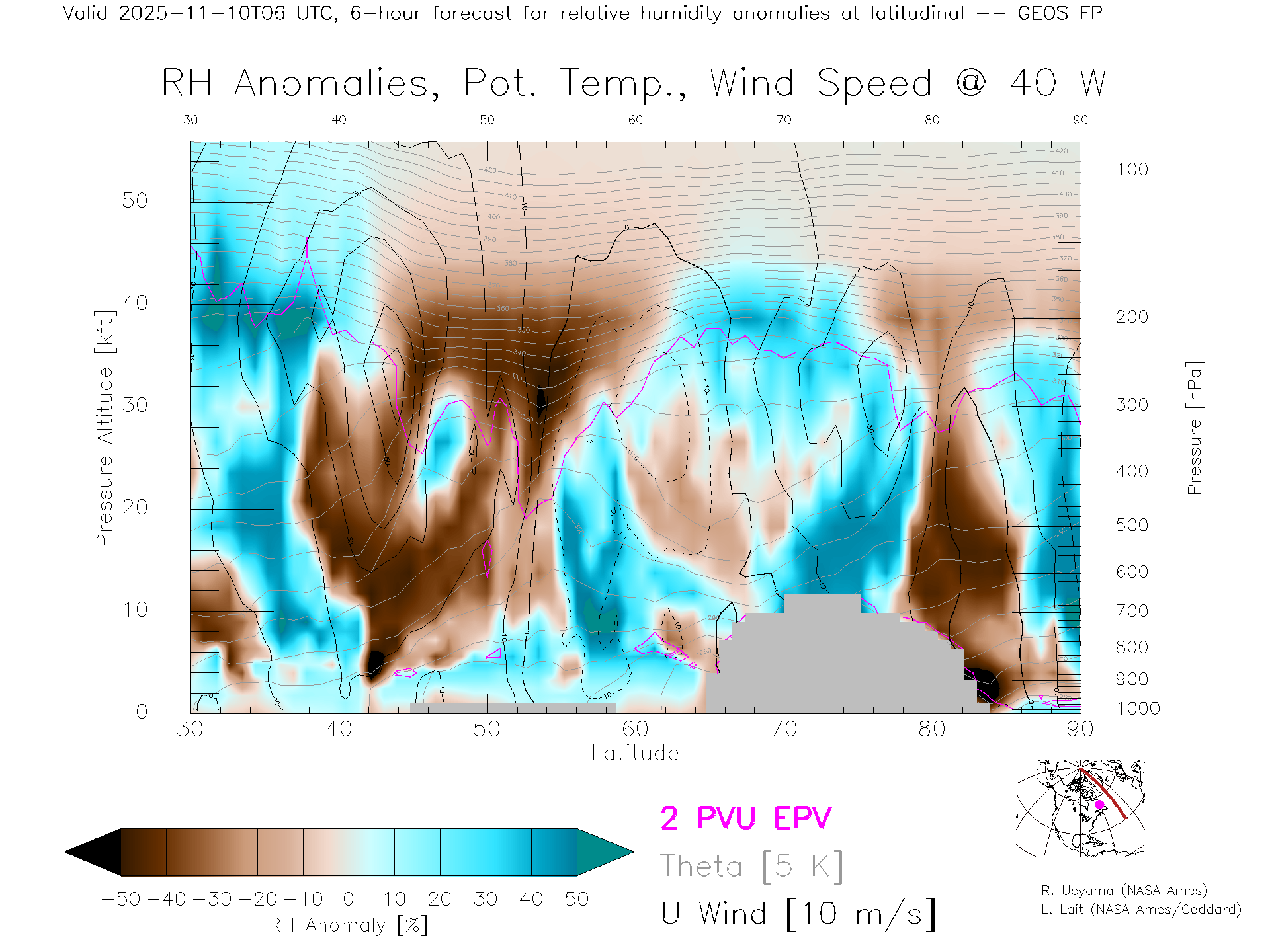 GEOS Forecast Rel. Hum. X-Section (40 W)