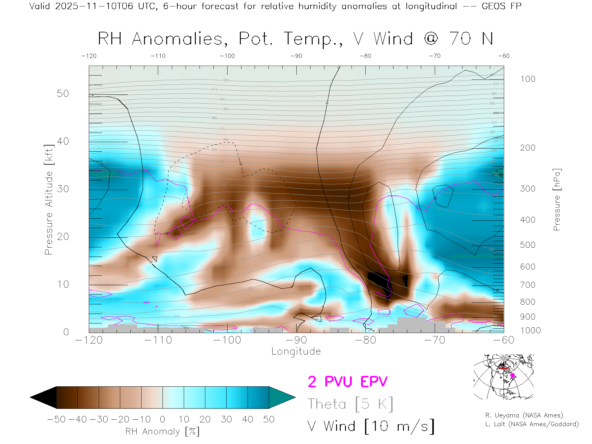 GEOS Forecast Rel. Hum. X-Section (70 N)