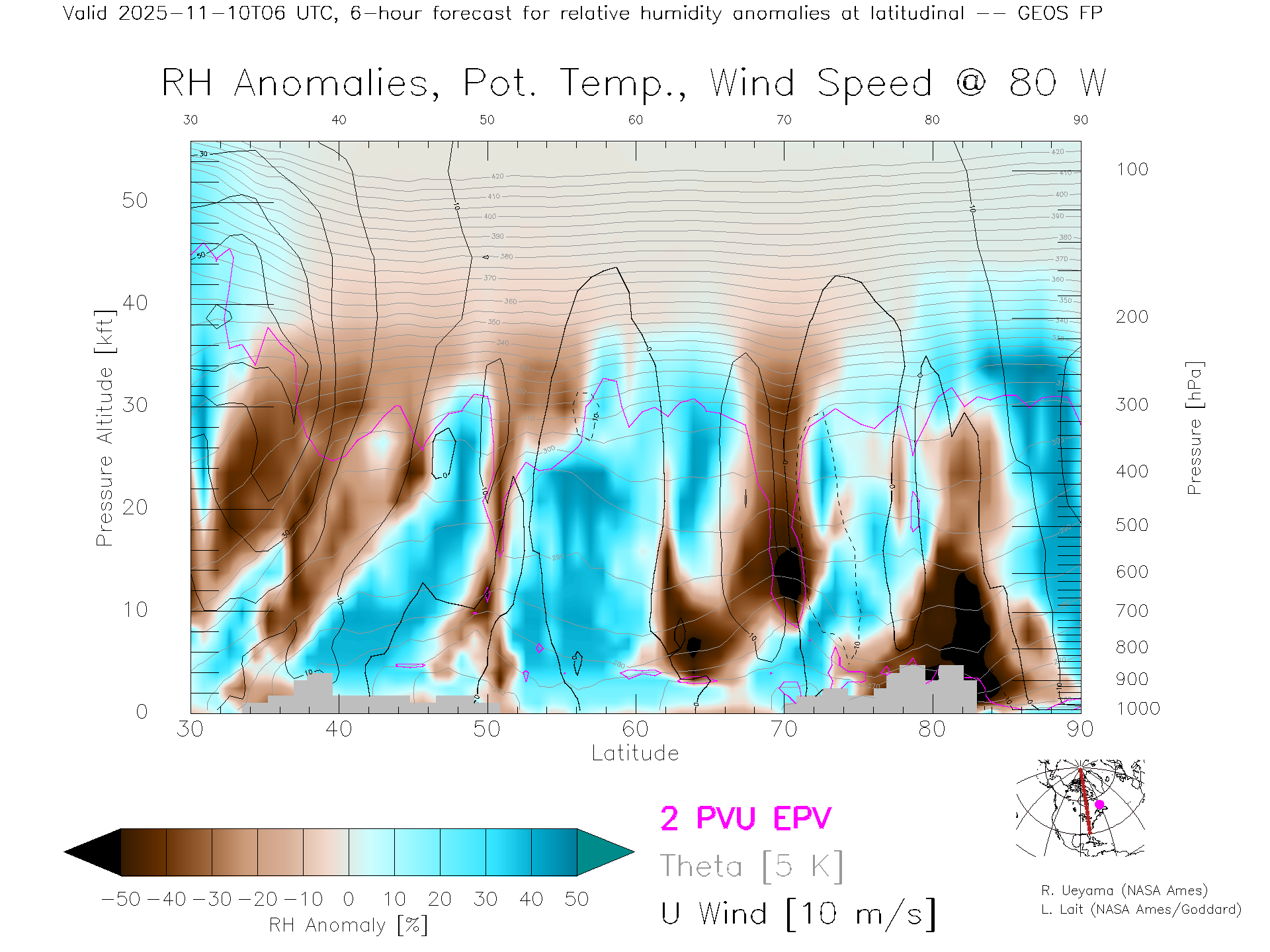 GEOS Forecast Rel. Hum. X-Section (80 W)