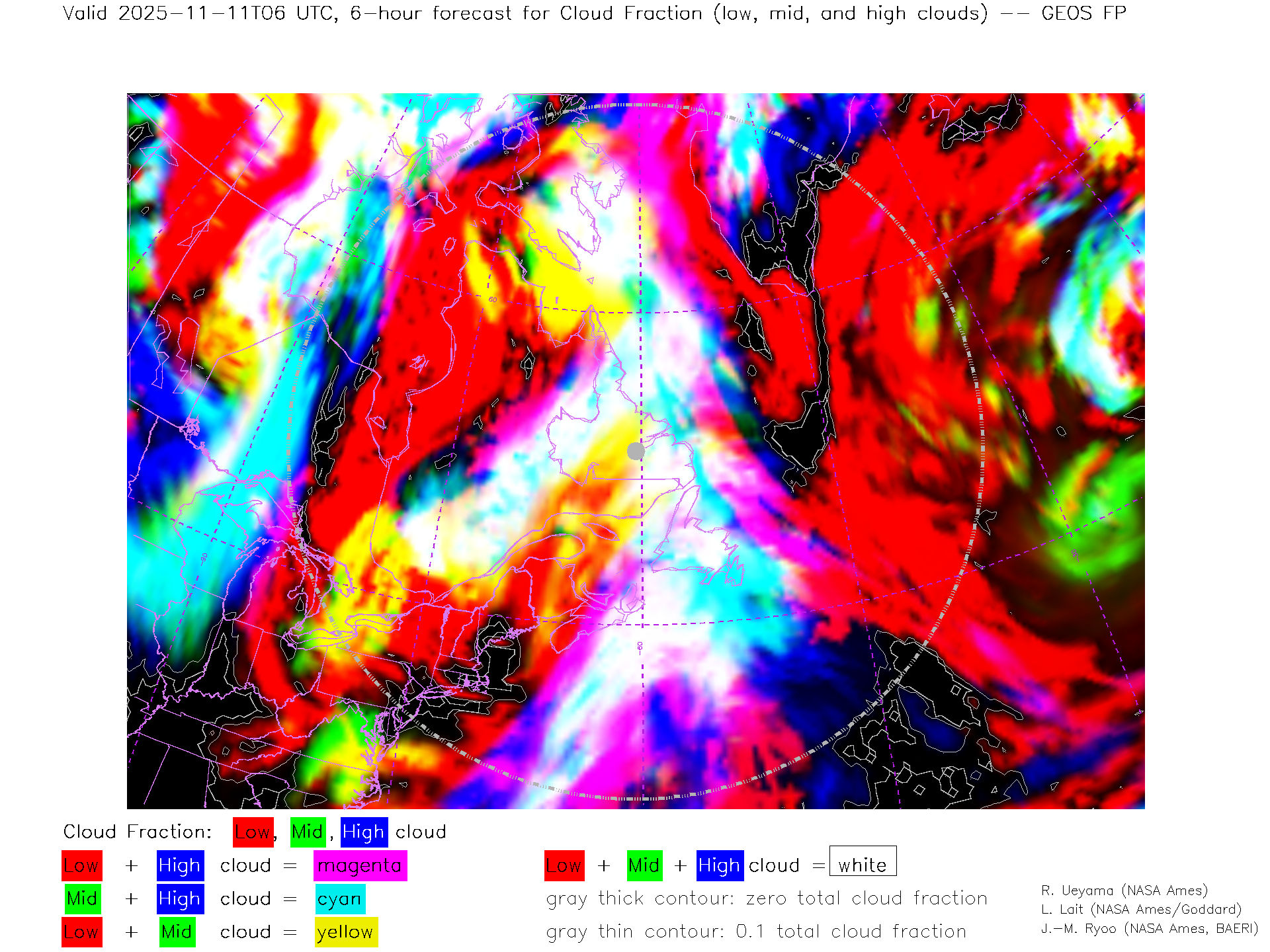 GEOS Forecast Low-, Mid- and High-level Cloud Fraction
