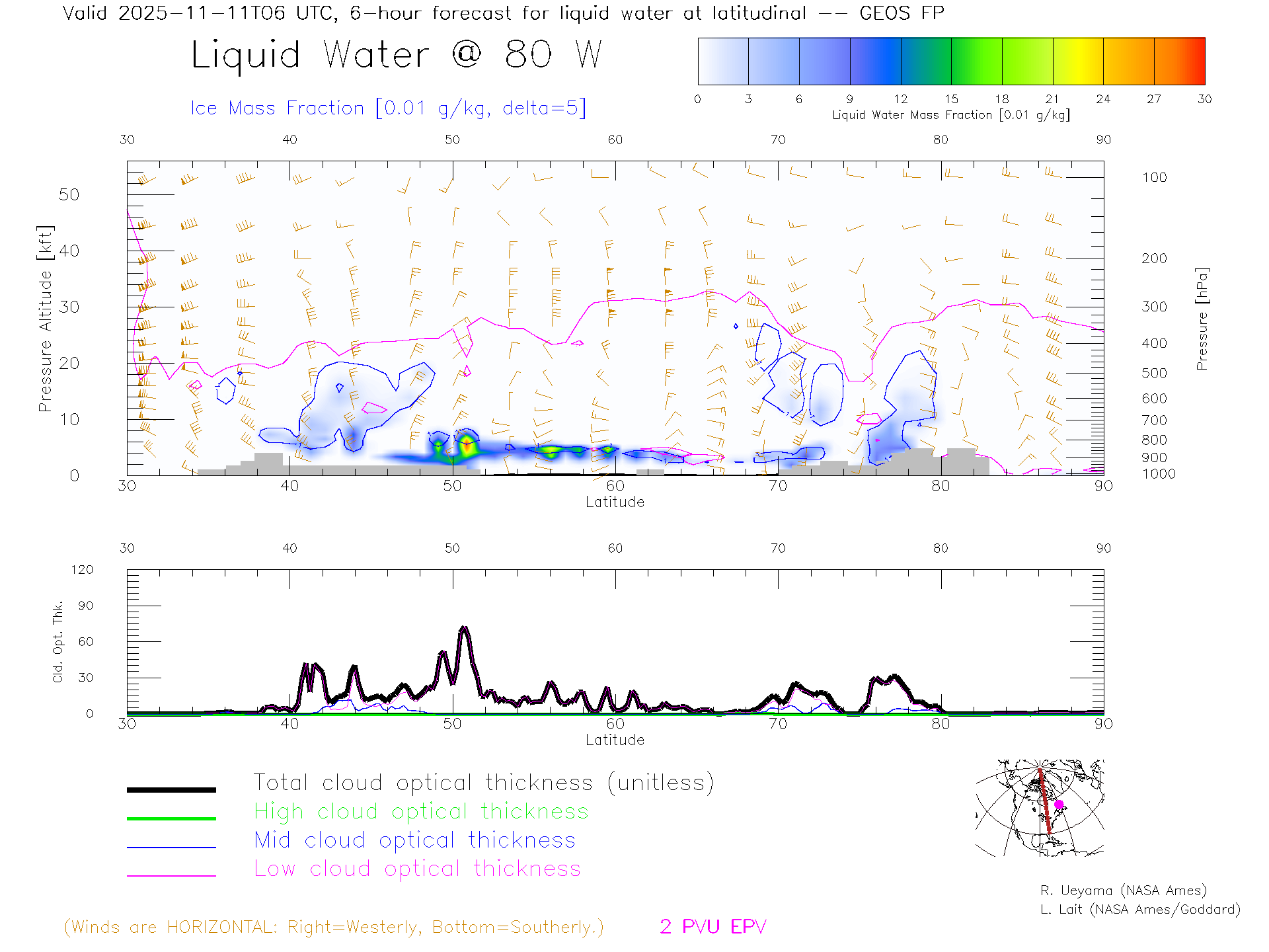 GEOS Forecast Cloud Water Content X-Section (80 W)