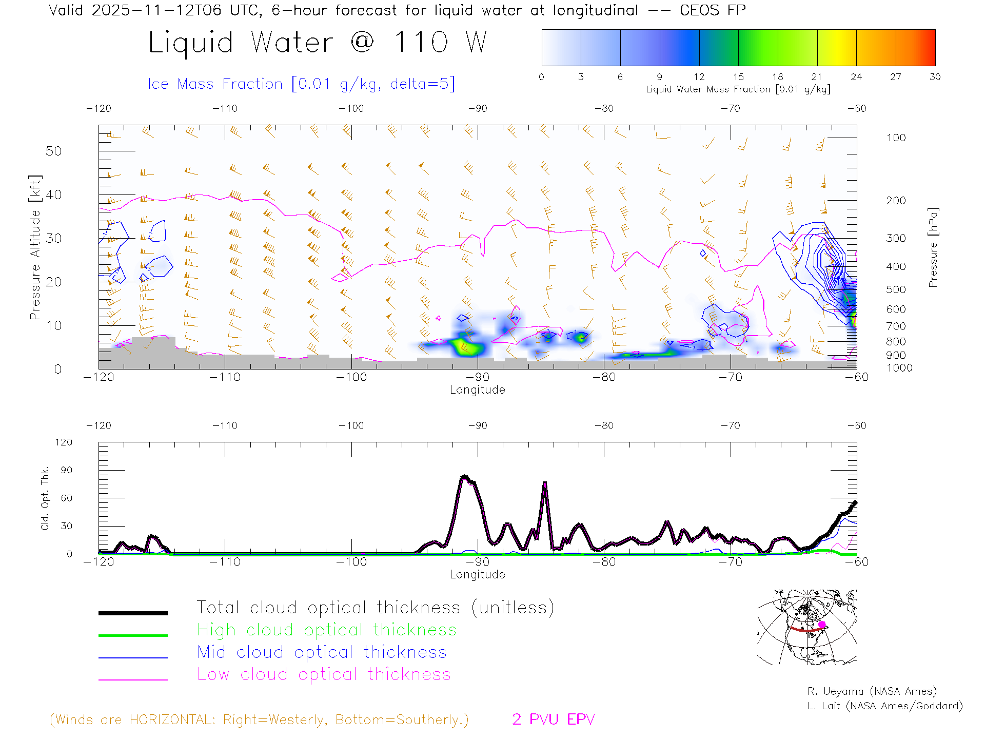 GEOS Forecast Cloud Water Content X-Section (50 N)