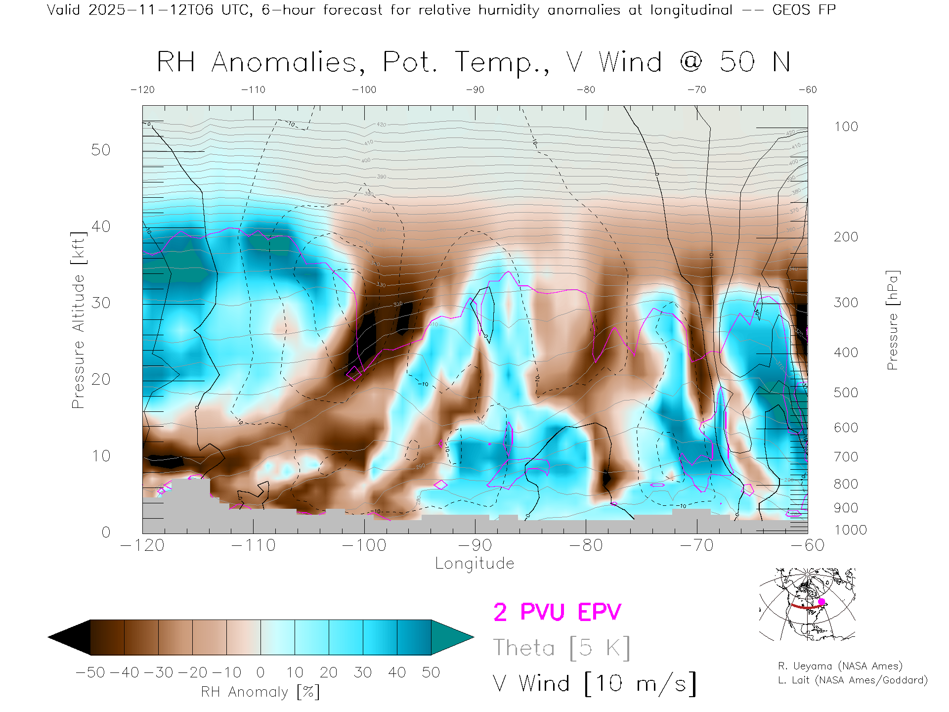 GEOS Forecast Rel. Hum. X-Section (50 N)