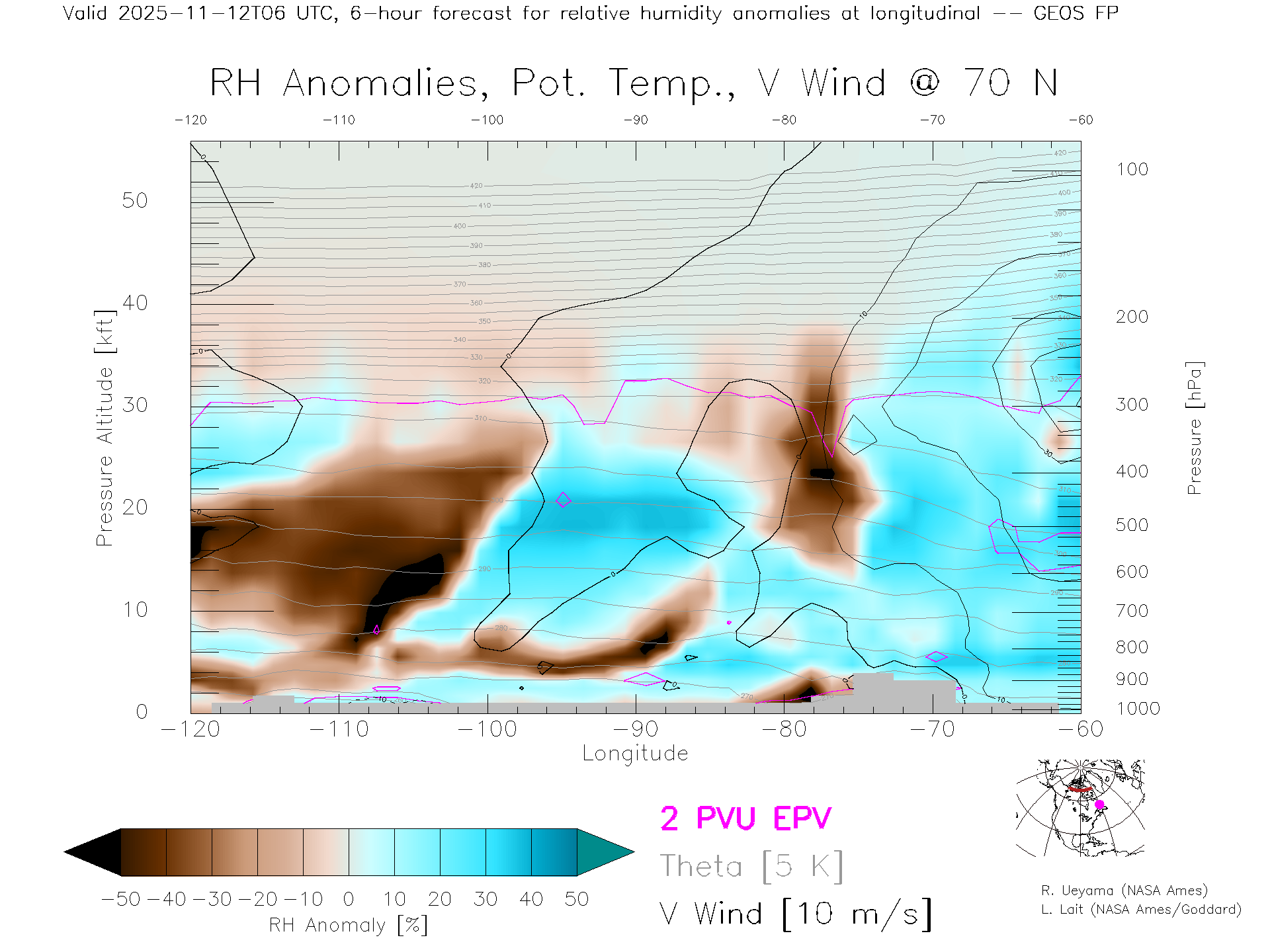 GEOS Forecast Rel. Hum. X-Section (70 N)