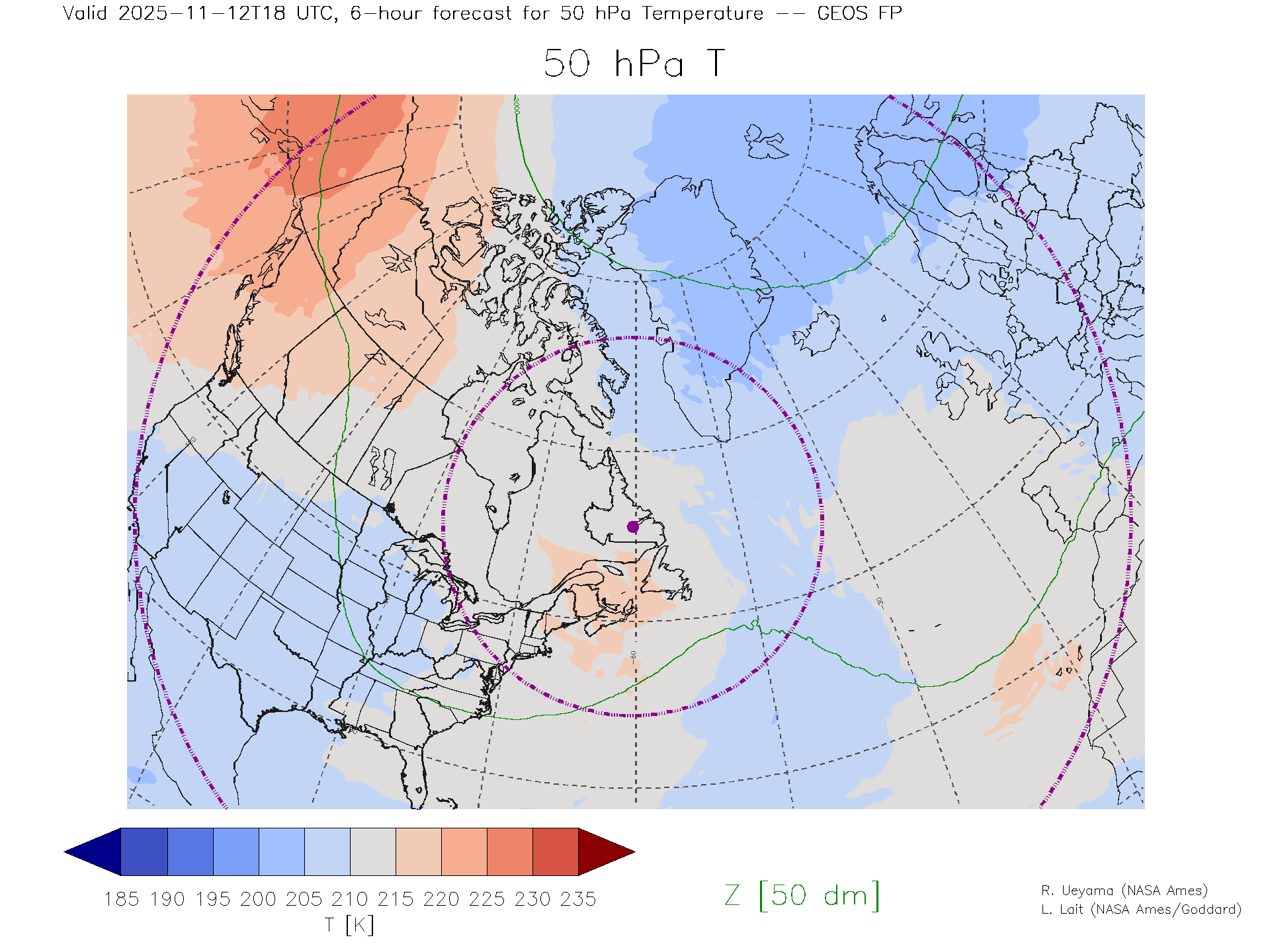GEOS Forecast 50 hPa Temp.
