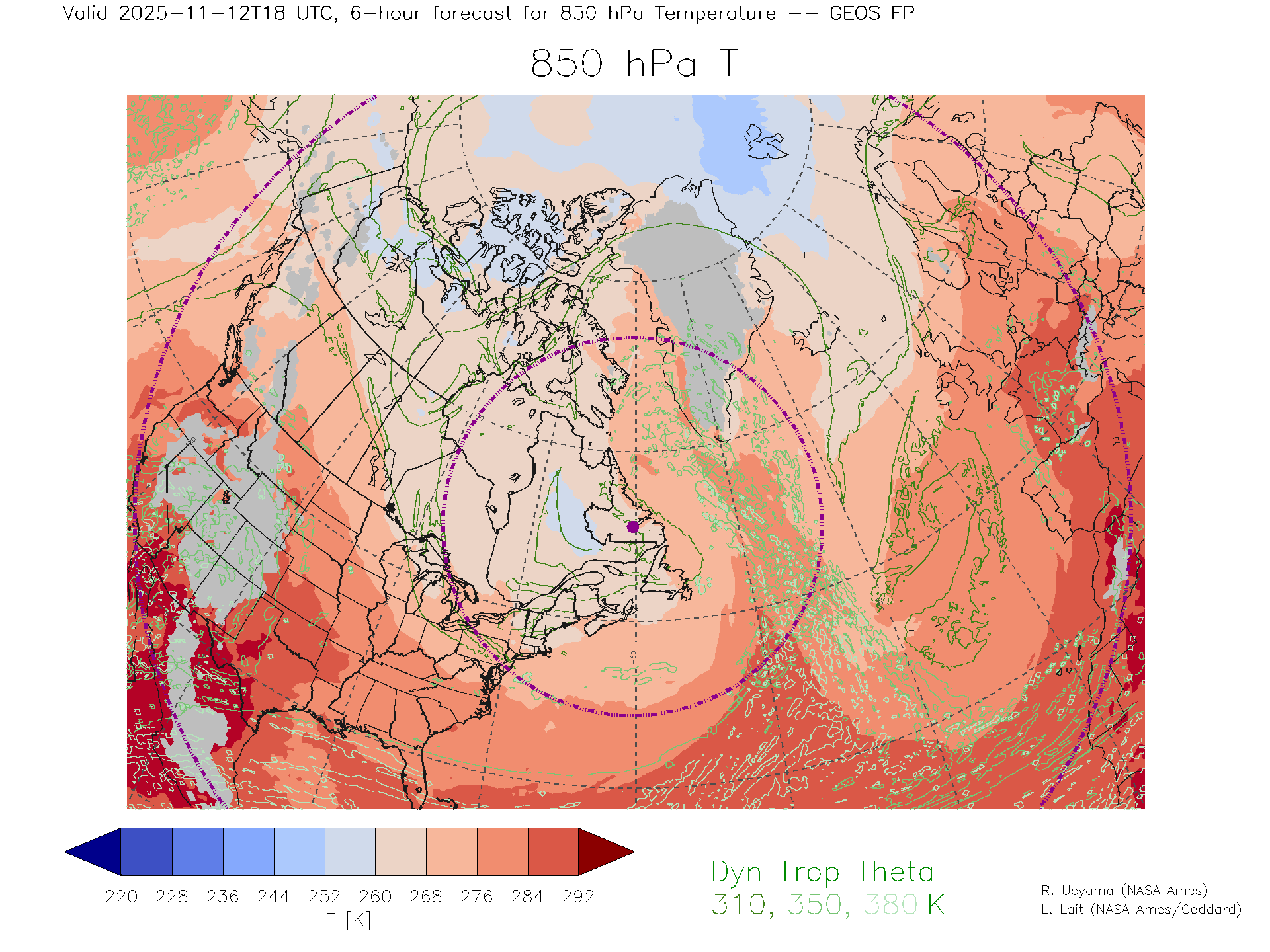 GEOS Forecast 850 hPa Temp.
