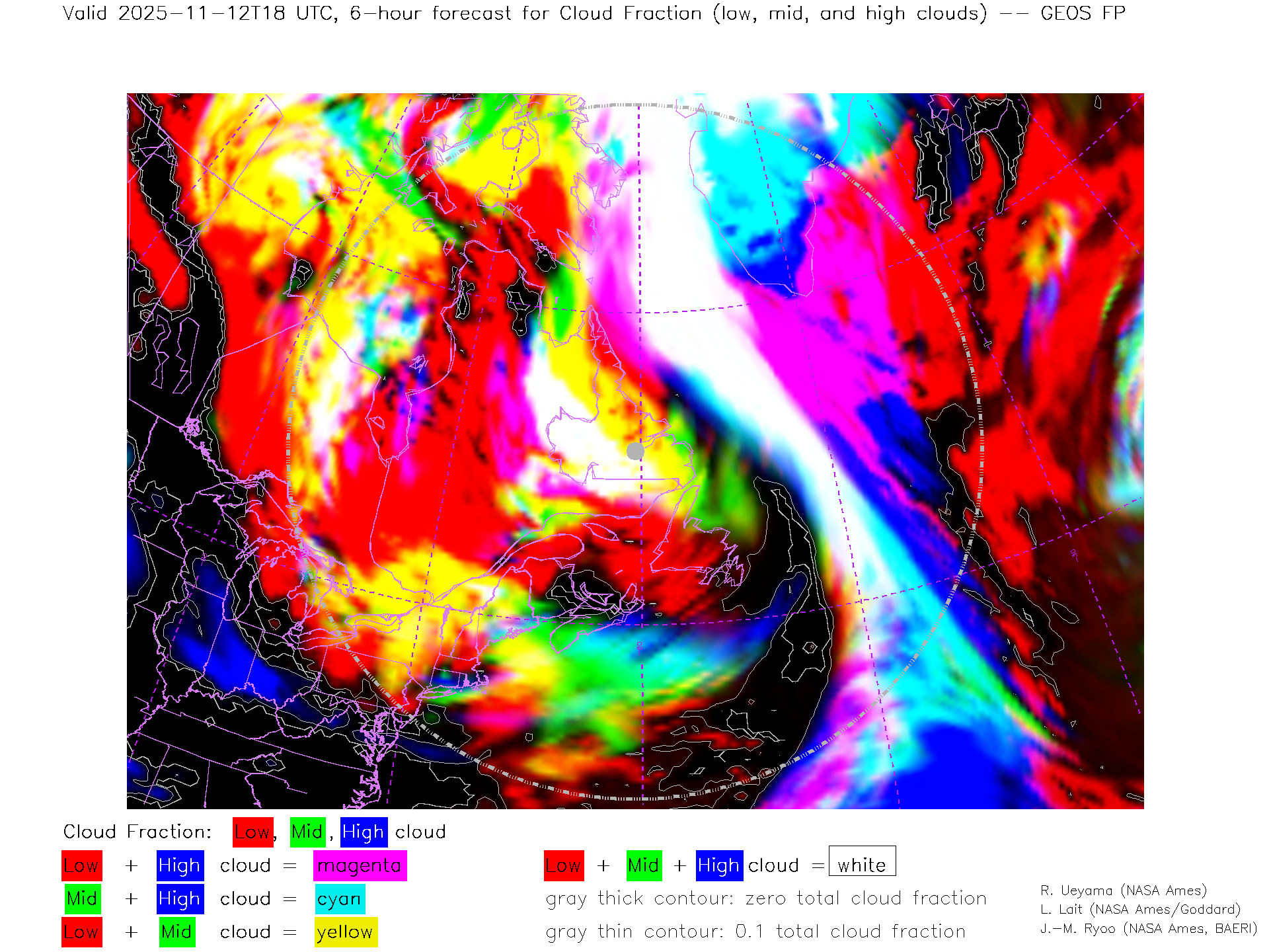 GEOS Forecast Low-, Mid- and High-level Cloud Fraction