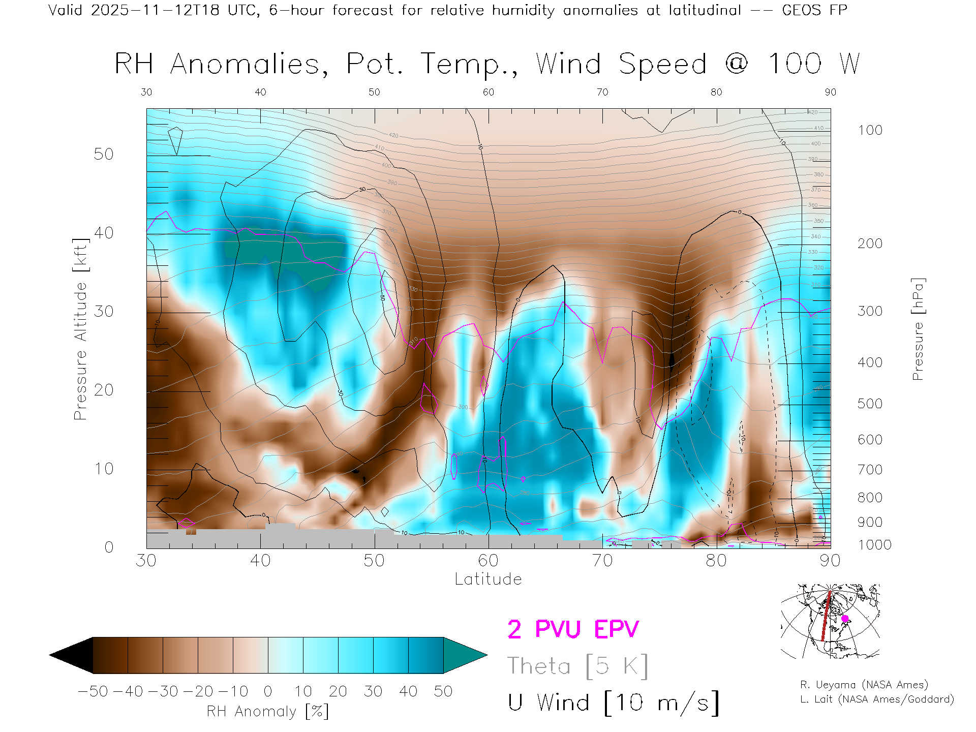 GEOS Forecast Rel. Hum. X-Section (100 W)