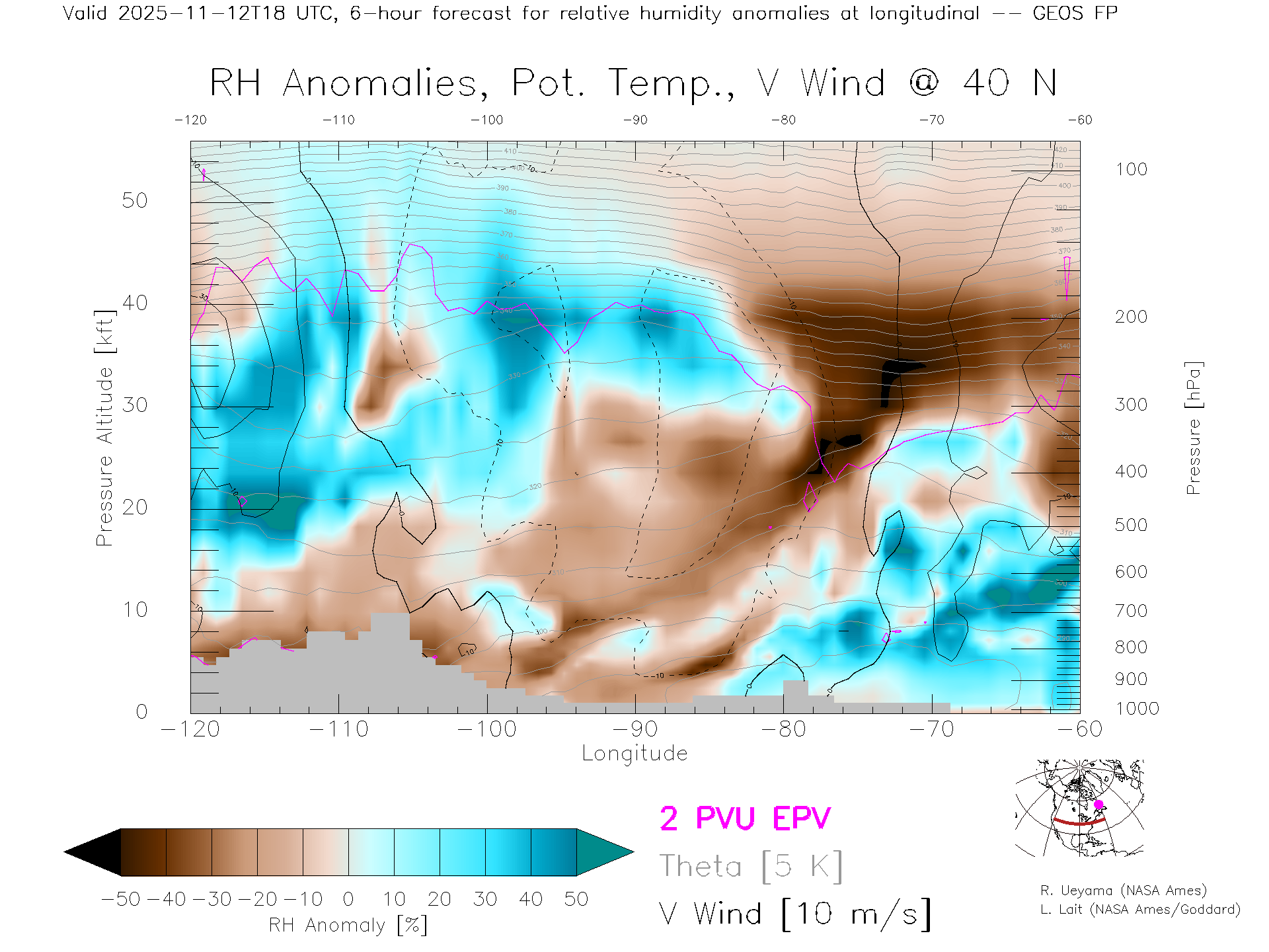 GEOS Forecast Rel. Hum. X-Section (40 N)