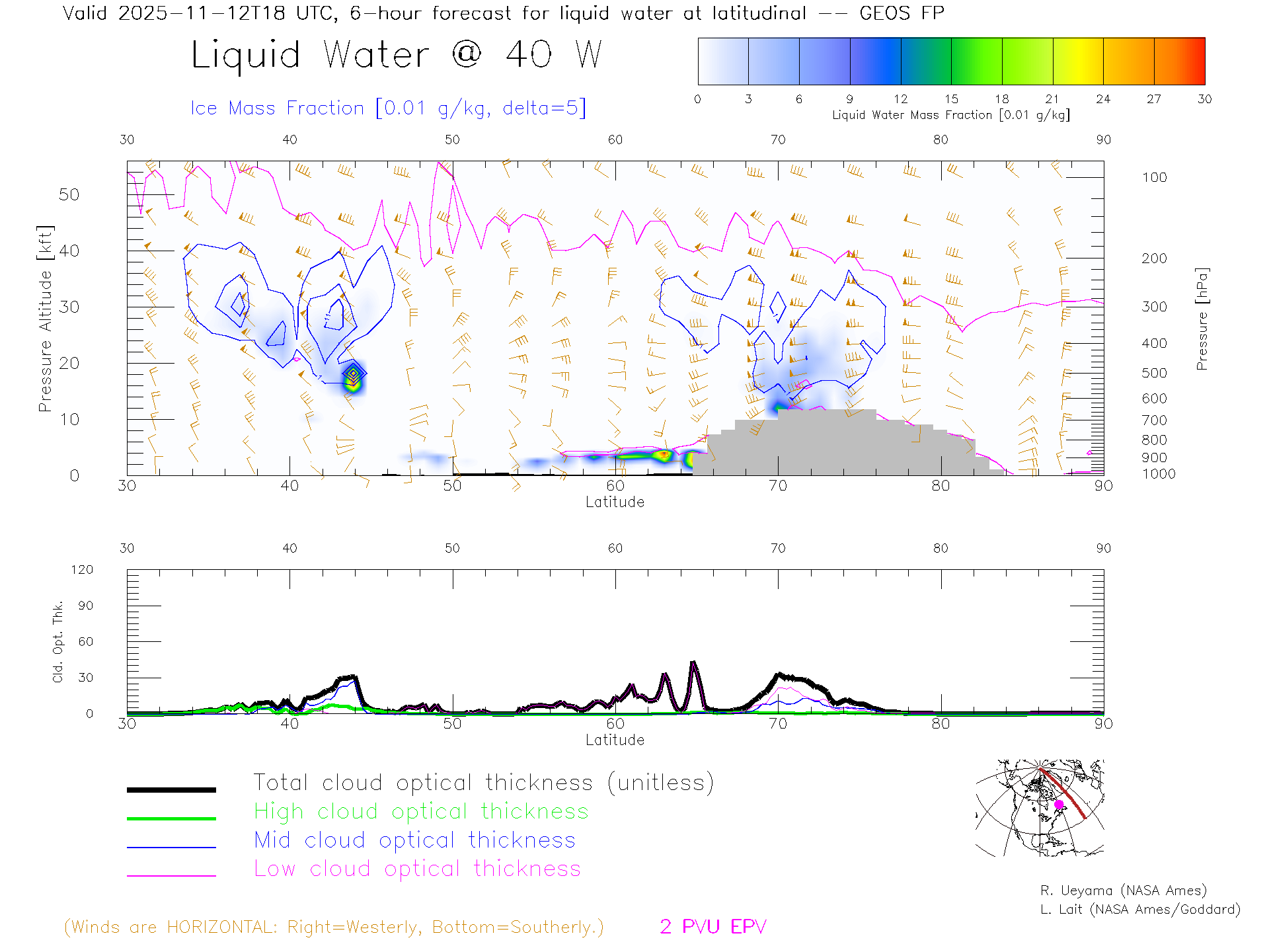 GEOS Forecast Cloud Water Content X-Section (40 W)