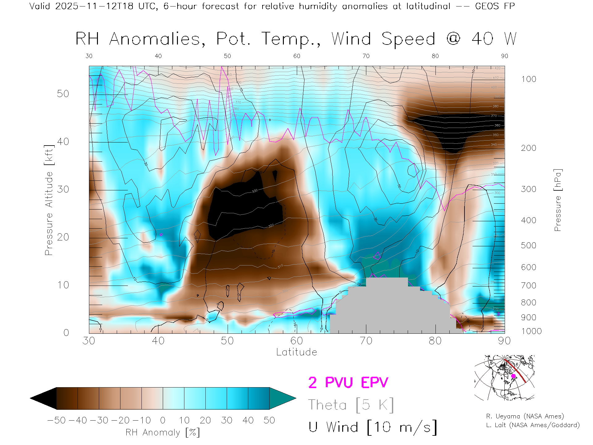 GEOS Forecast Rel. Hum. X-Section (40 W)
