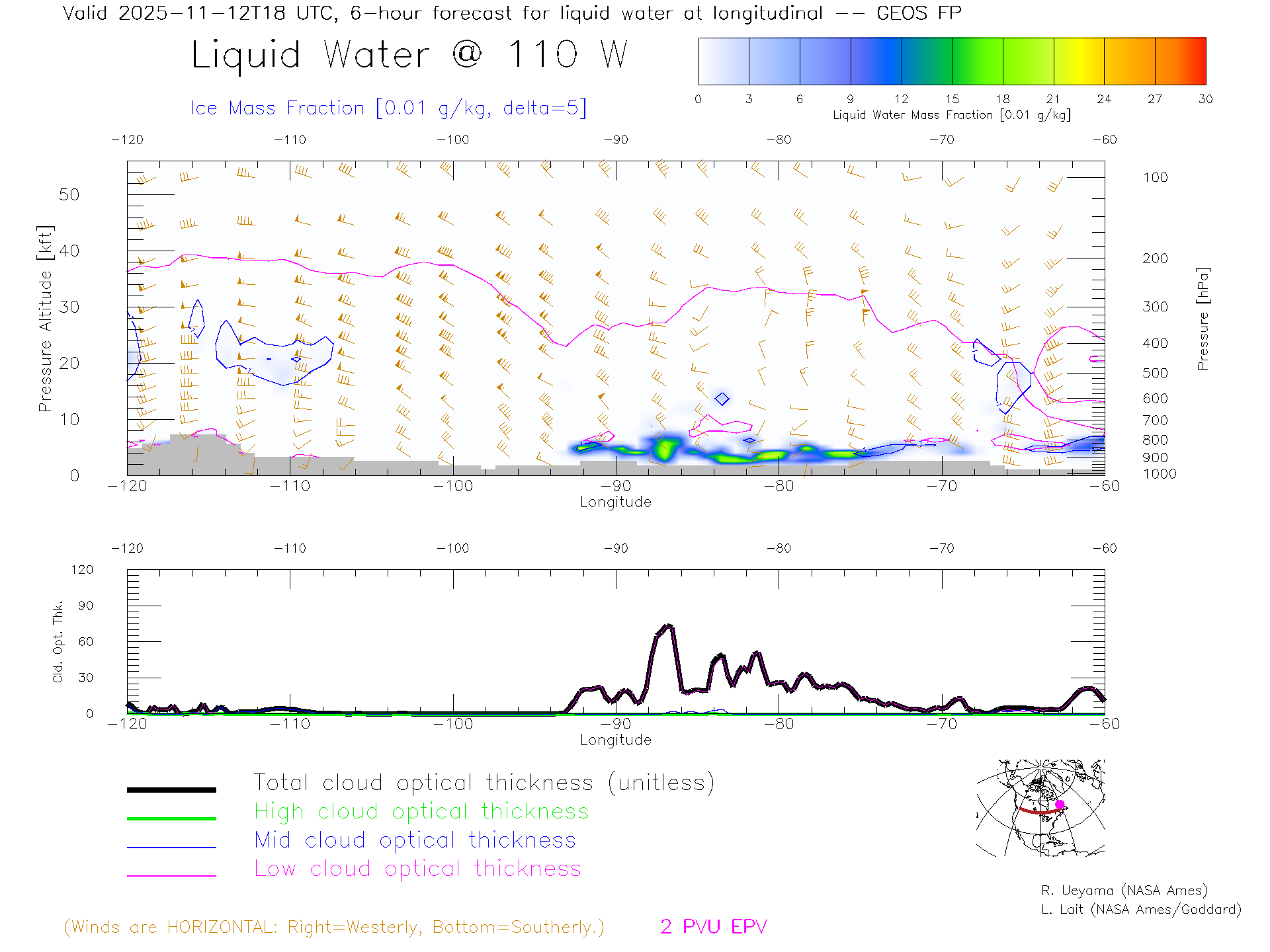 GEOS Forecast Cloud Water Content X-Section (50 N)
