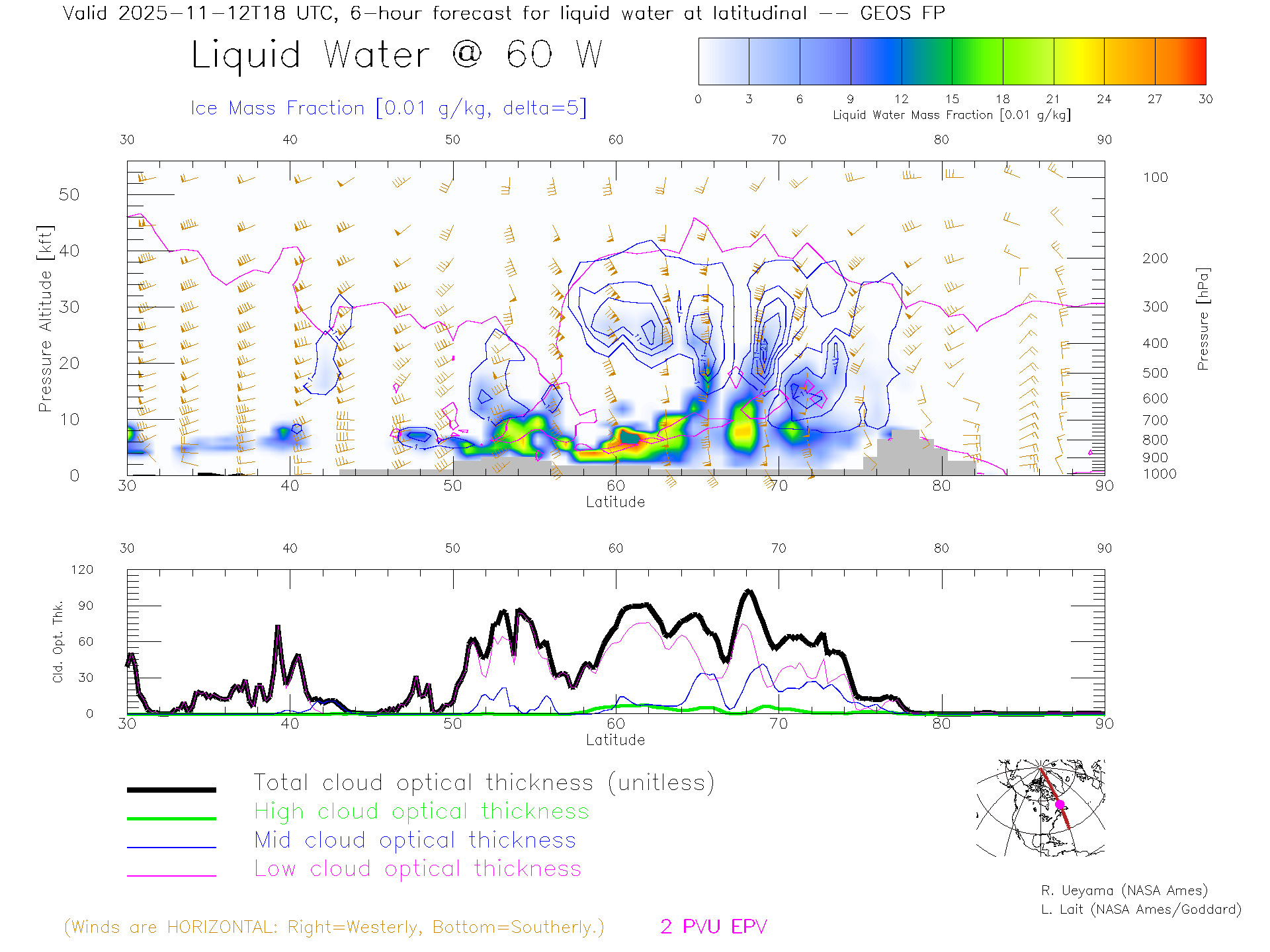 GEOS Forecast Cloud Water Content X-Section (60 W)