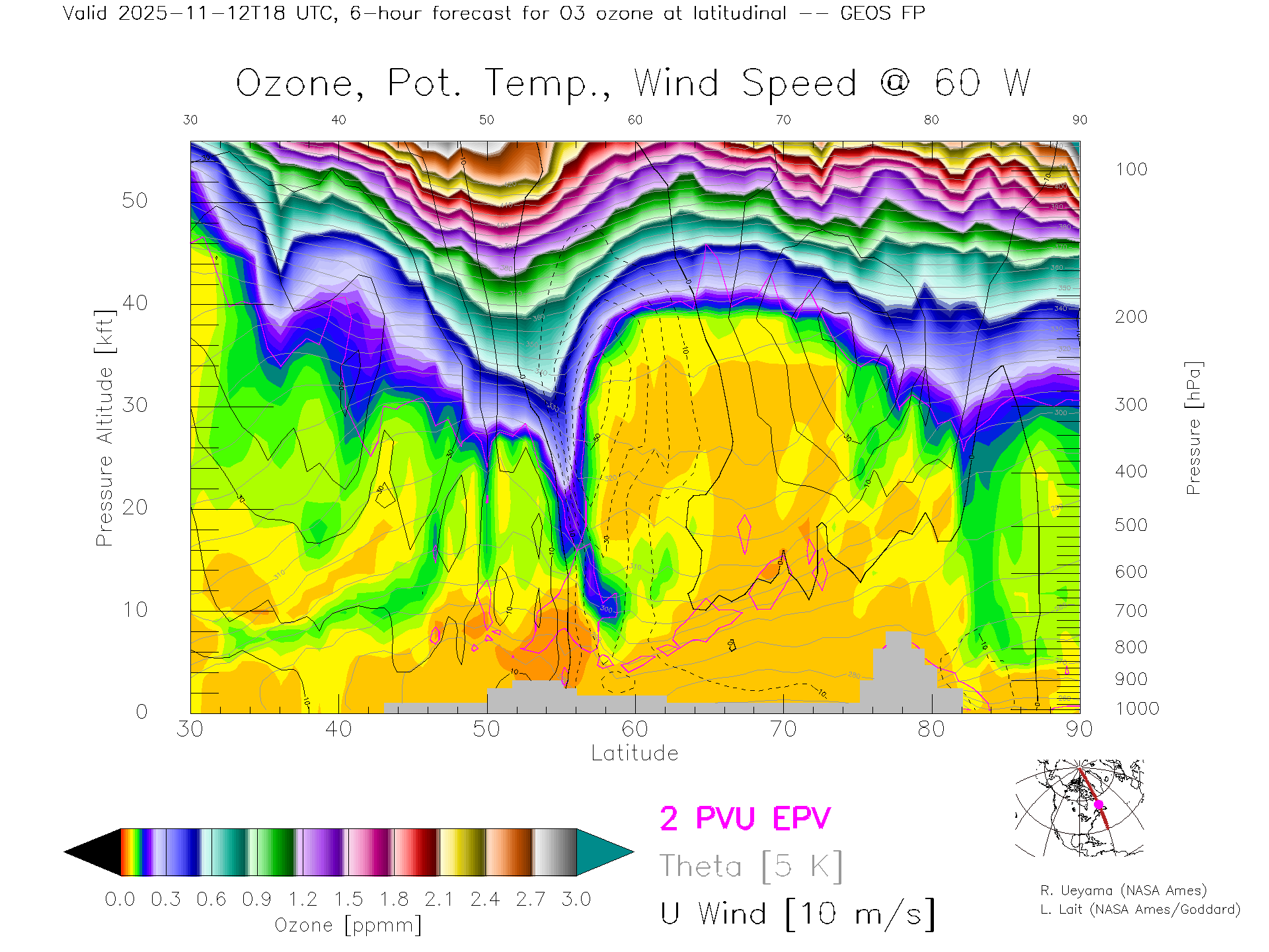 GEOS Forecast Ozone X-Section (60 W)
