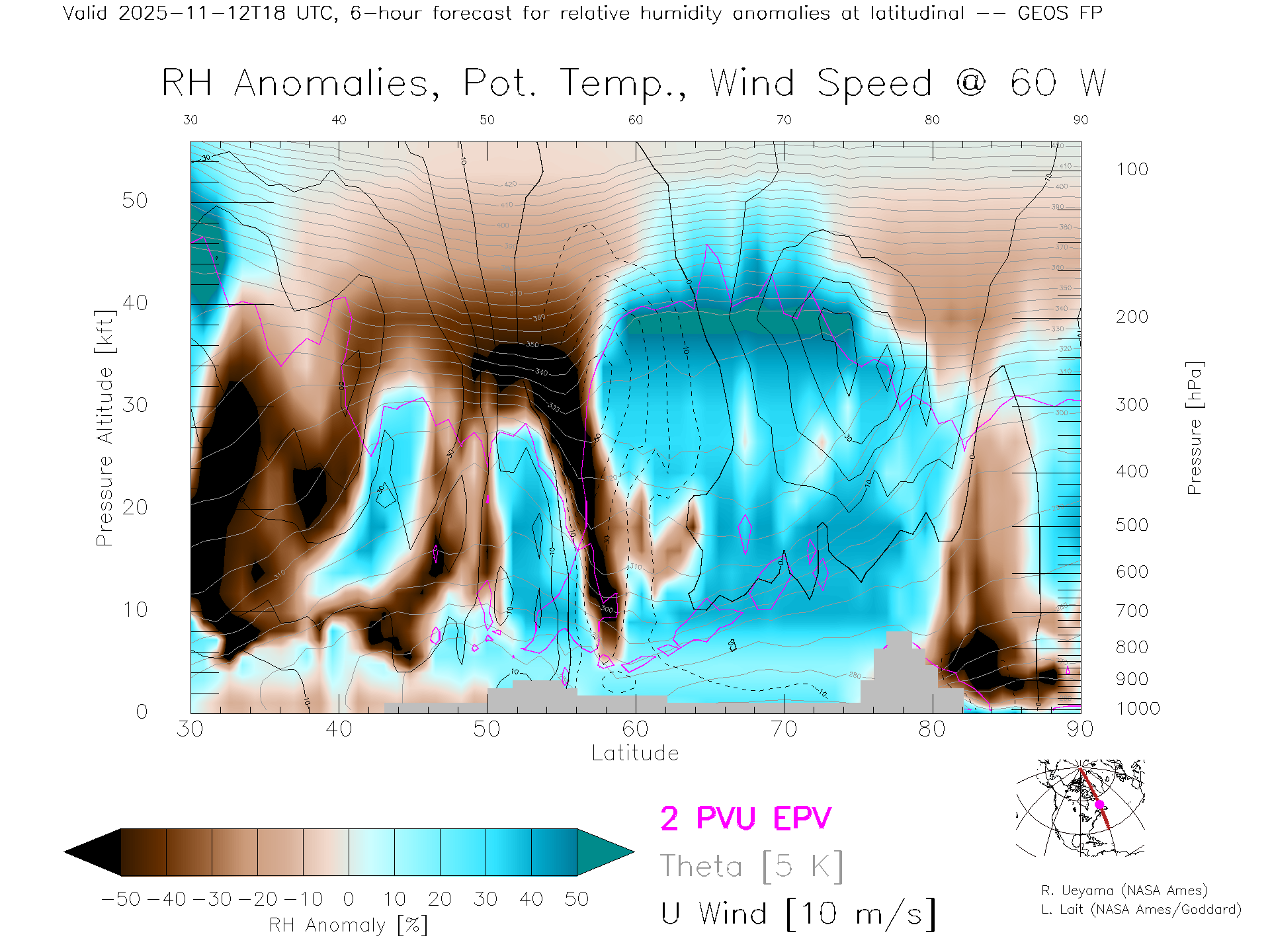 GEOS Forecast Rel. Hum. X-Section (60 W)