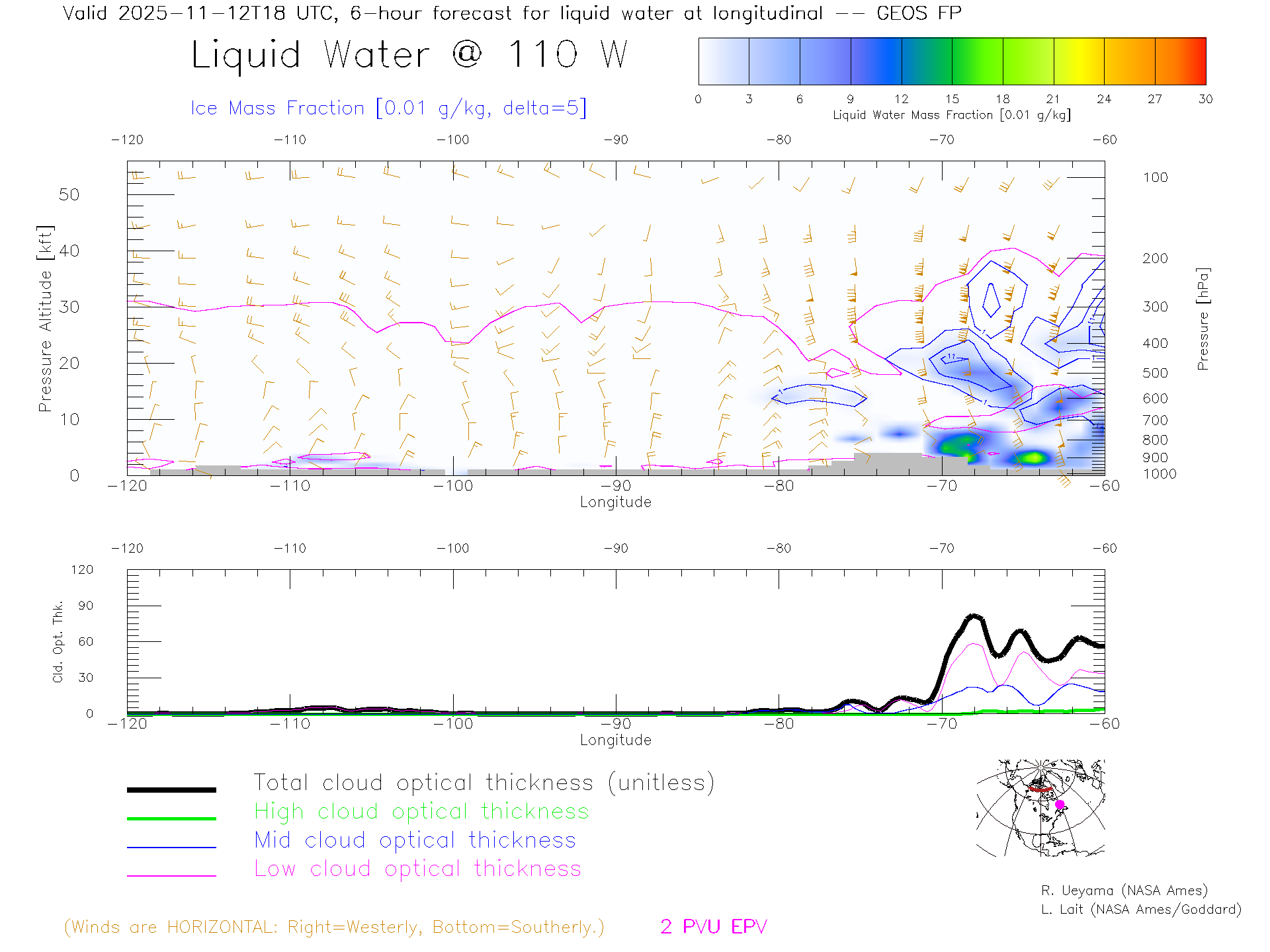 GEOS Forecast Cloud Water Content X-Section (70 N)
