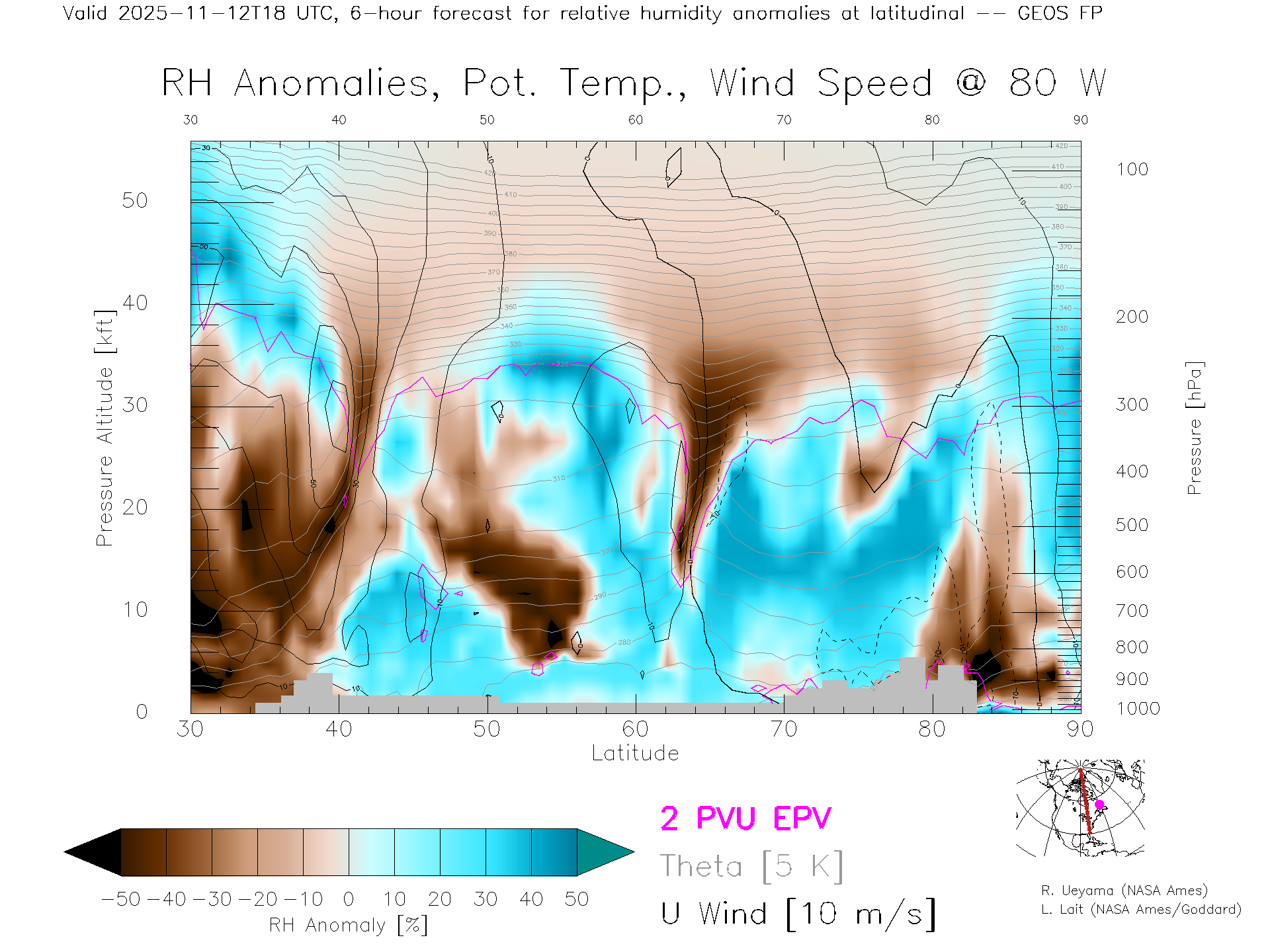 GEOS Forecast Rel. Hum. X-Section (80 W)
