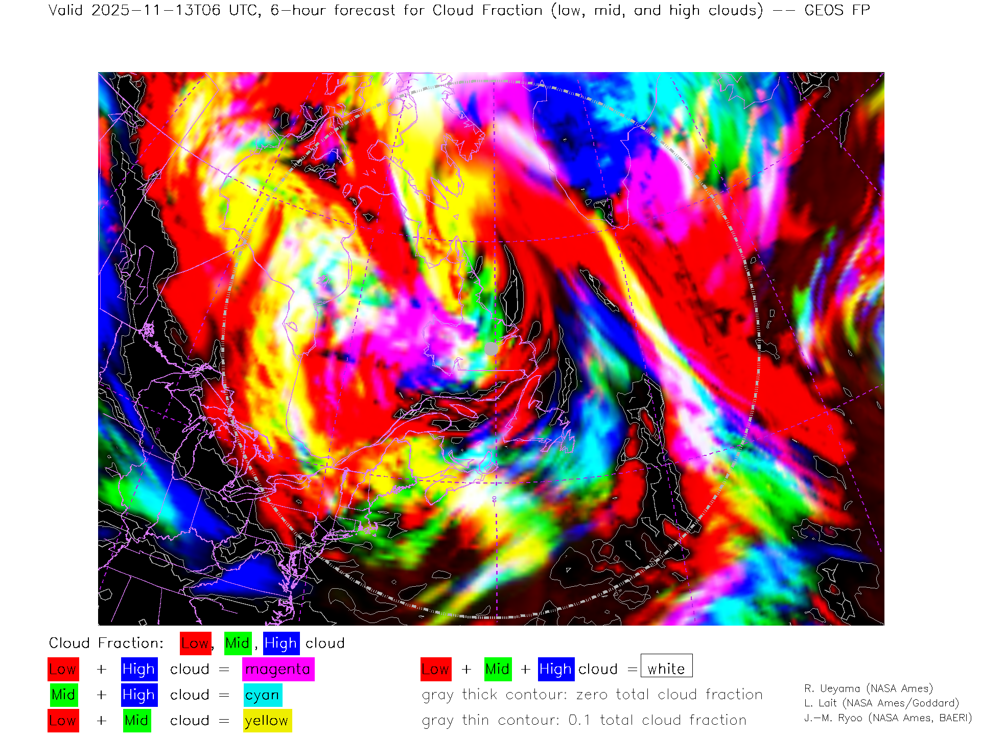 GEOS Forecast Low-, Mid- and High-level Cloud Fraction
