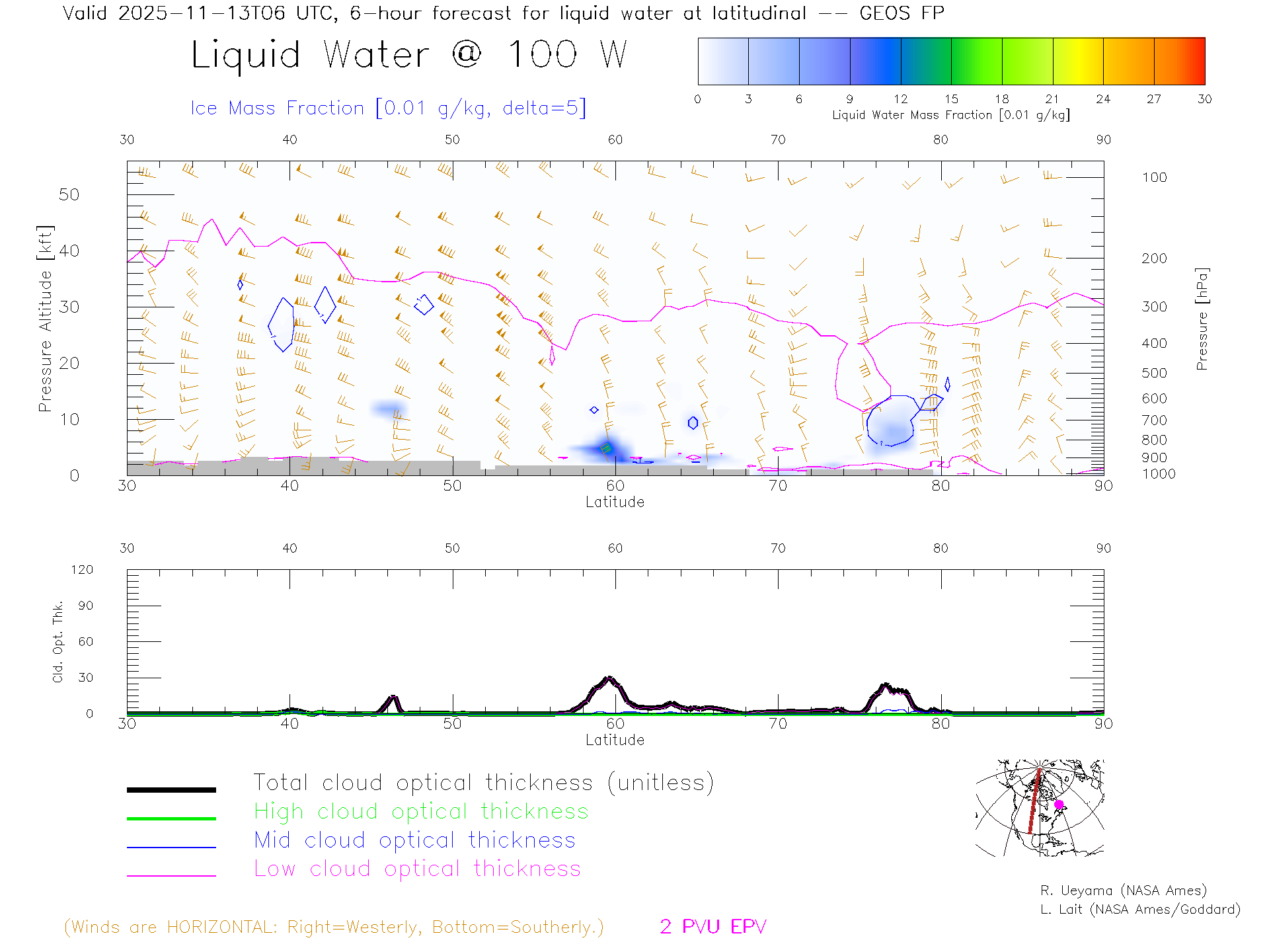 GEOS Forecast Cloud Water Content X-Section (100 W)