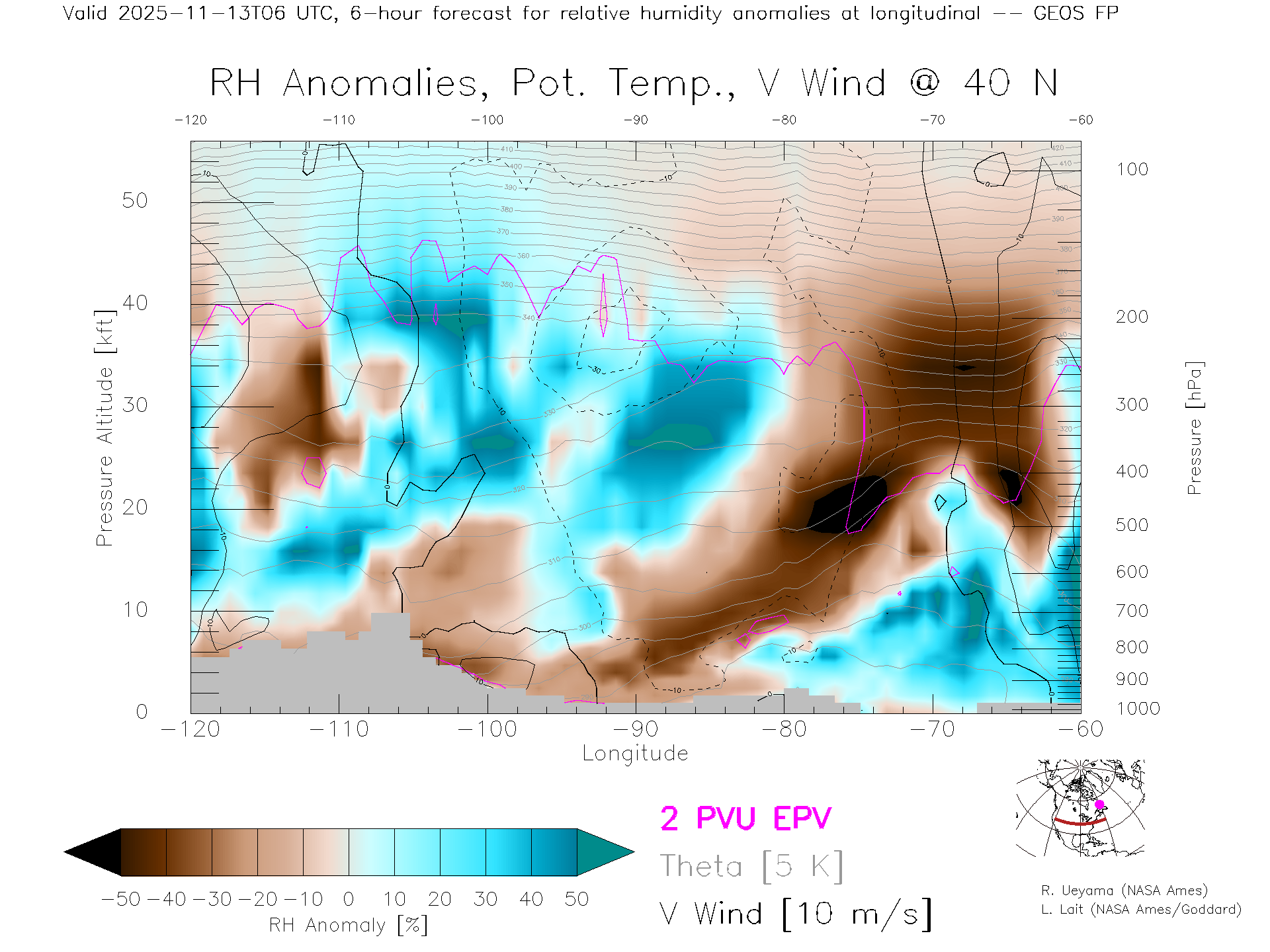 GEOS Forecast Rel. Hum. X-Section (40 N)