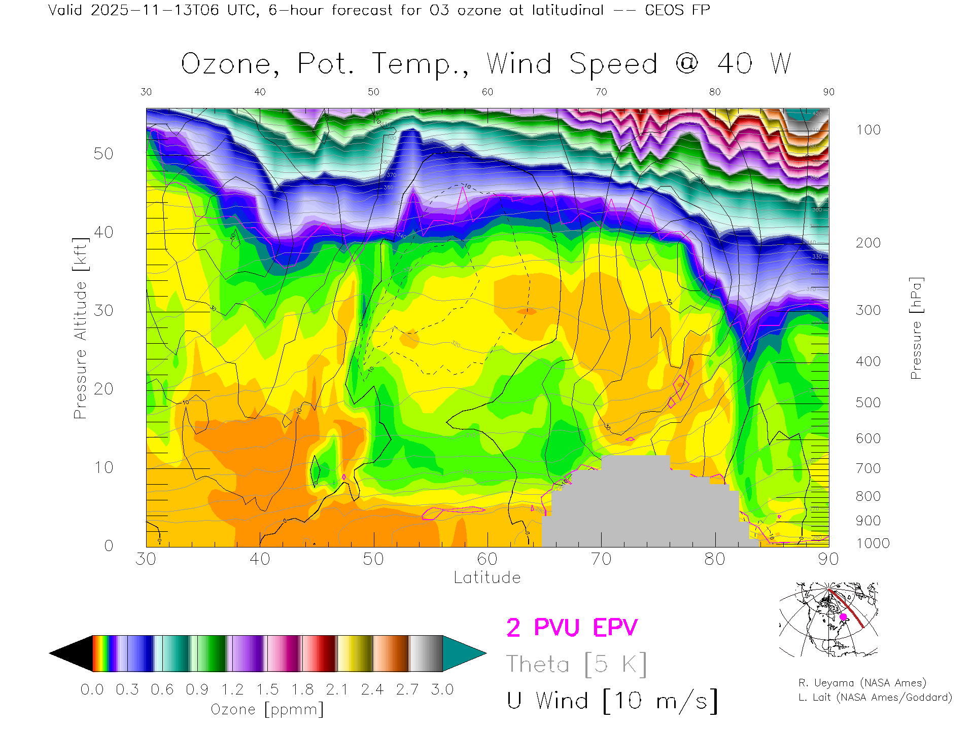 GEOS Forecast Ozone X-Section (40 W)