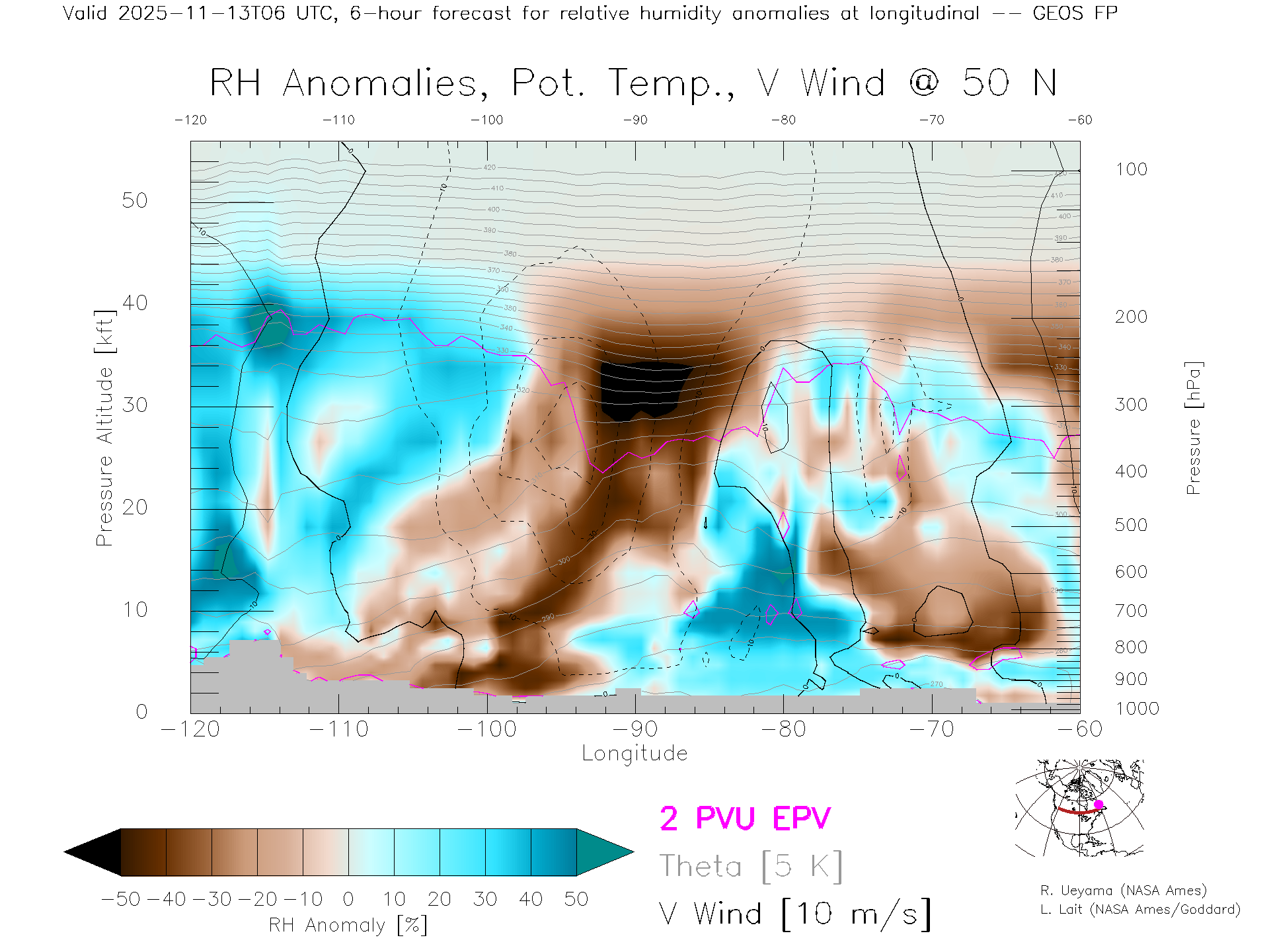 GEOS Forecast Rel. Hum. X-Section (50 N)