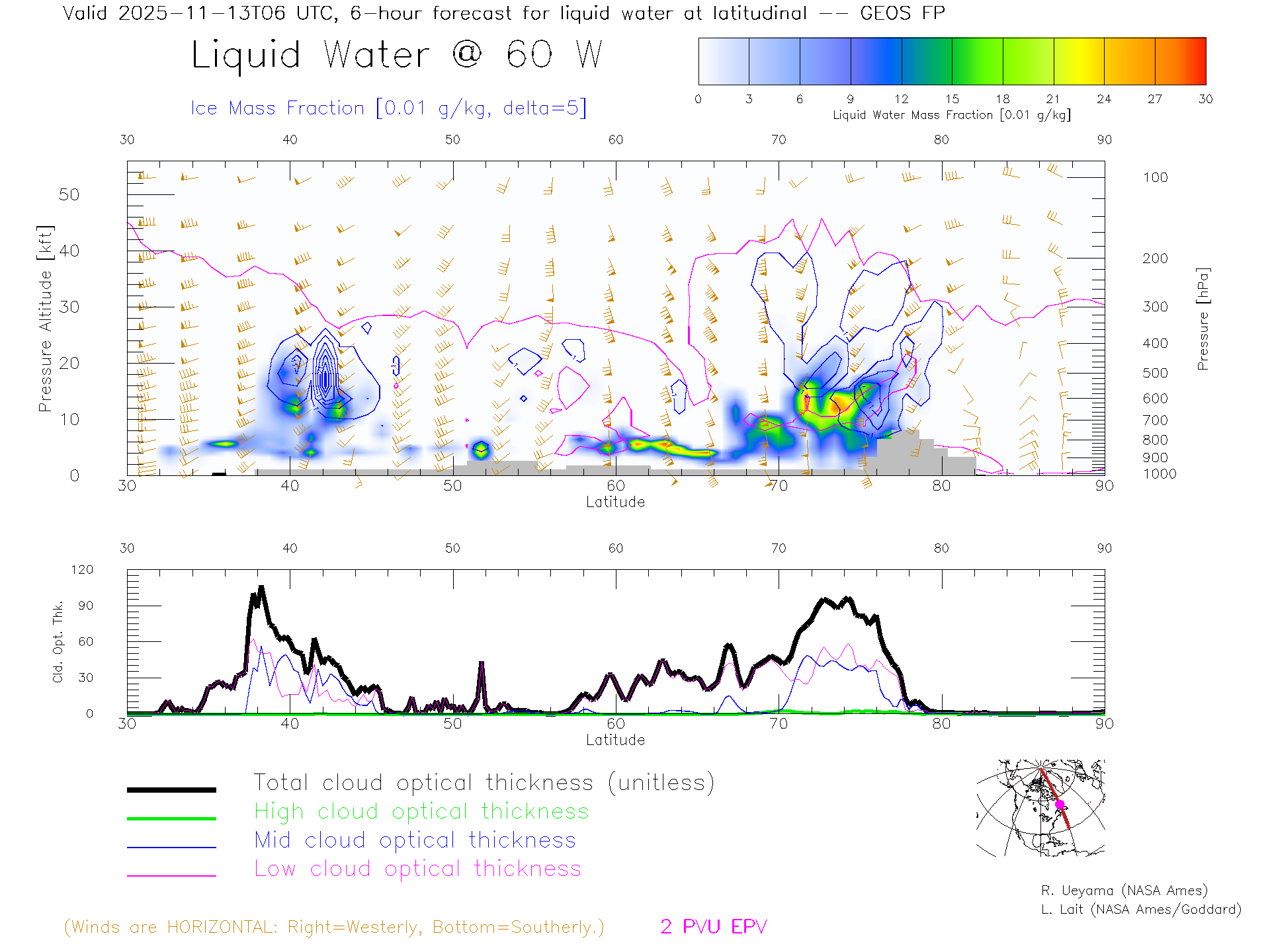 GEOS Forecast Cloud Water Content X-Section (60 W)
