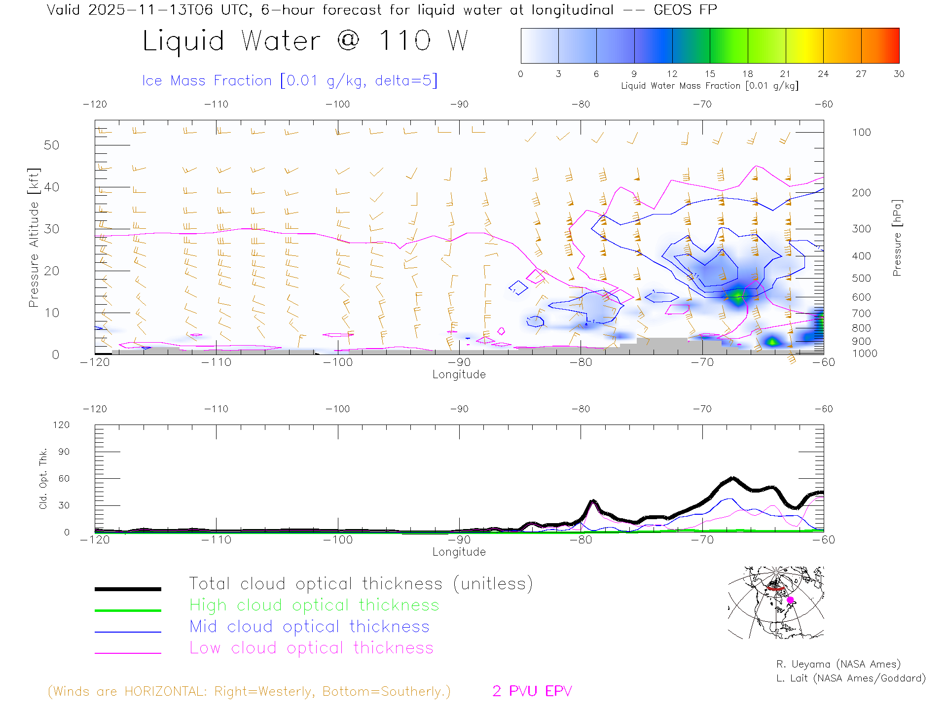 GEOS Forecast Cloud Water Content X-Section (70 N)