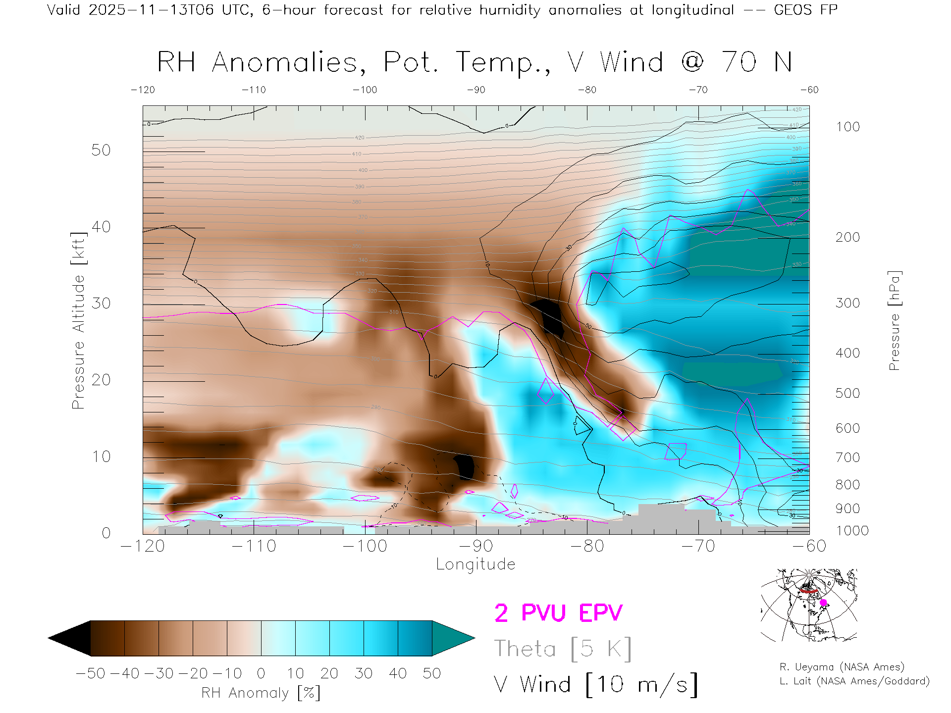 GEOS Forecast Rel. Hum. X-Section (70 N)