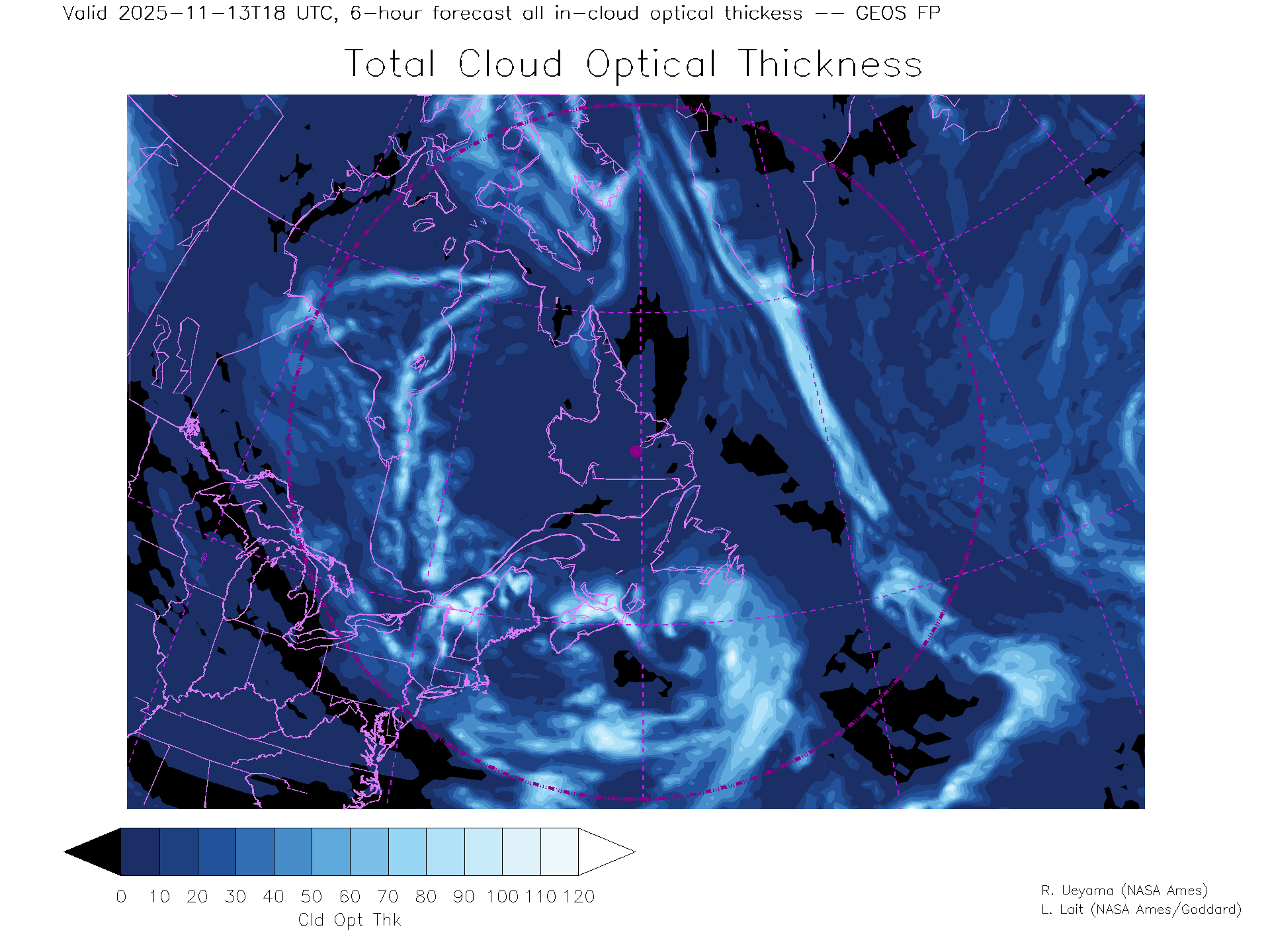 GEOS Forecast Total Cloud Optical thickness