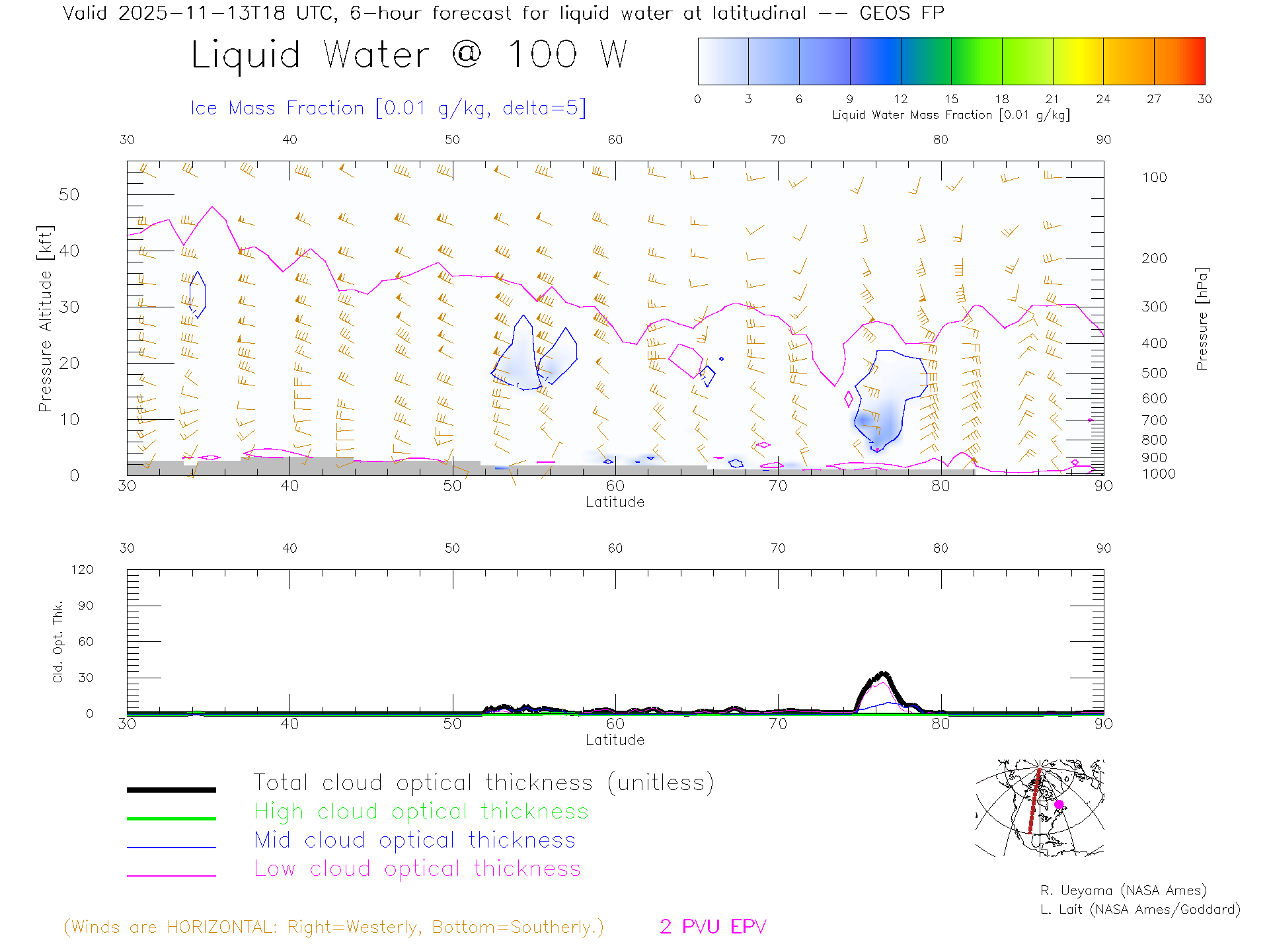 GEOS Forecast Cloud Water Content X-Section (100 W)