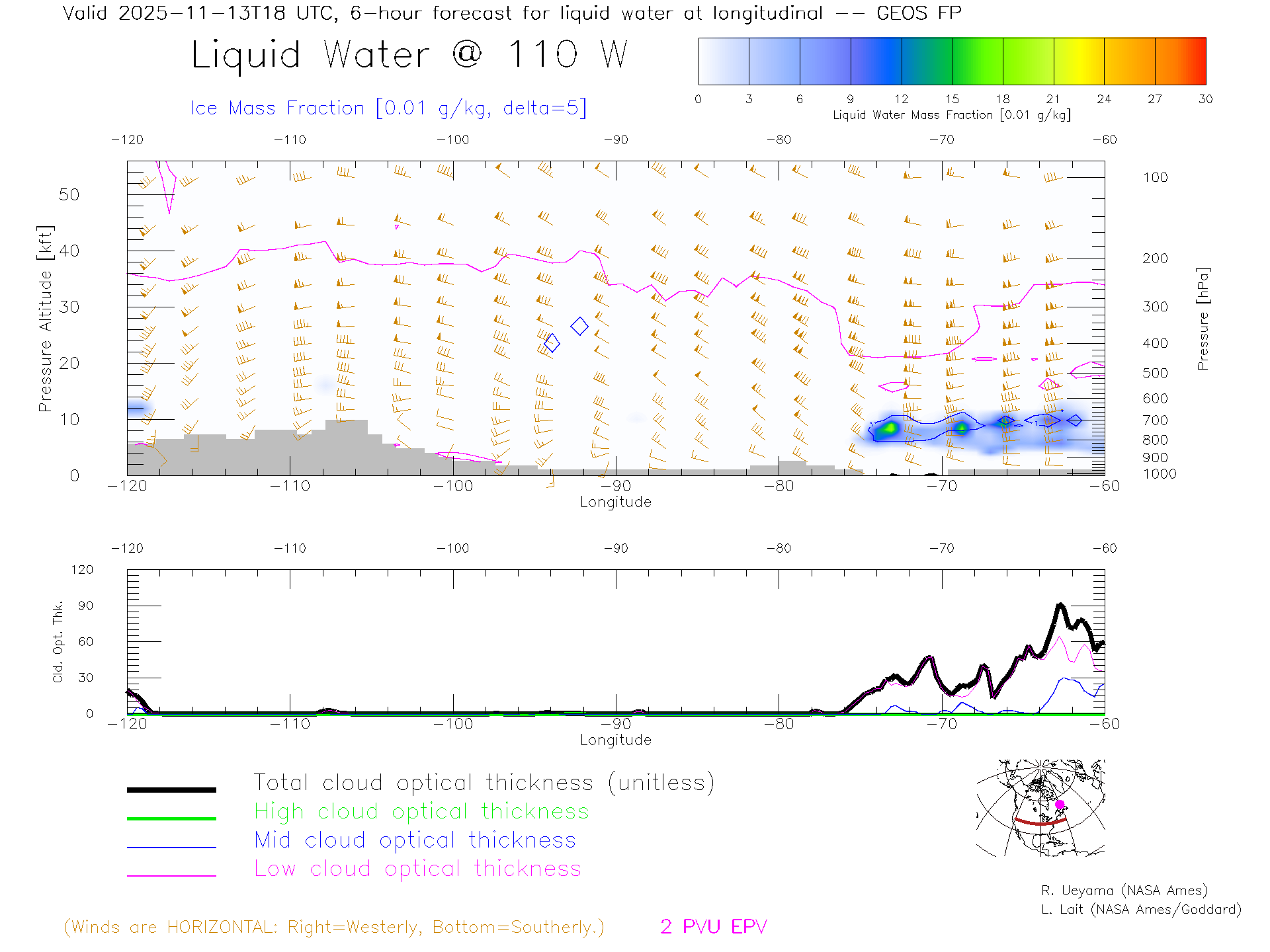GEOS Forecast Cloud Water Content X-Section (40 N)