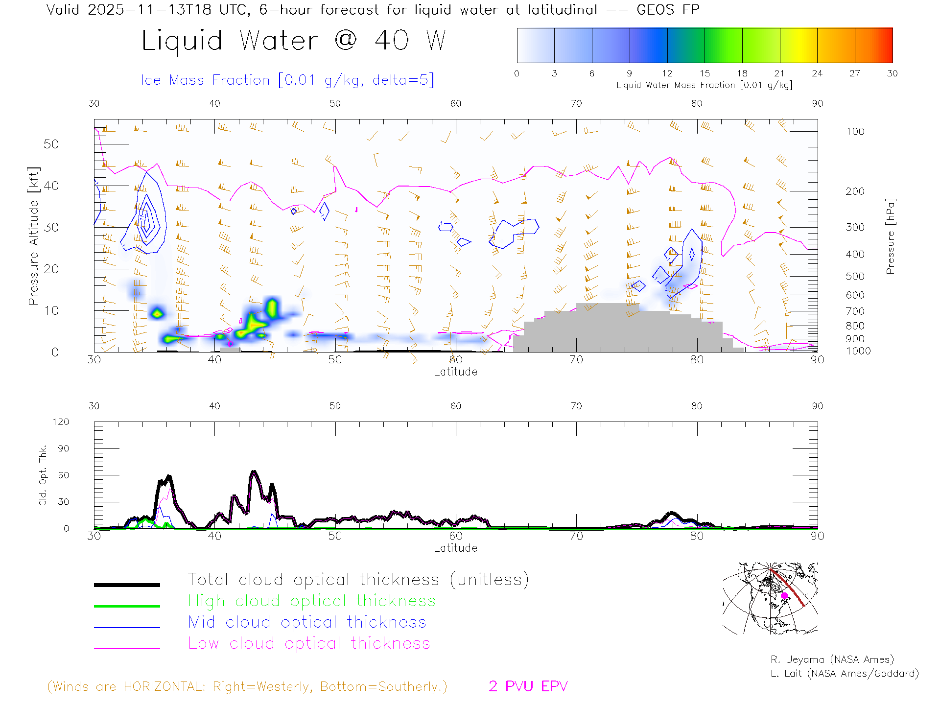GEOS Forecast Cloud Water Content X-Section (40 W)