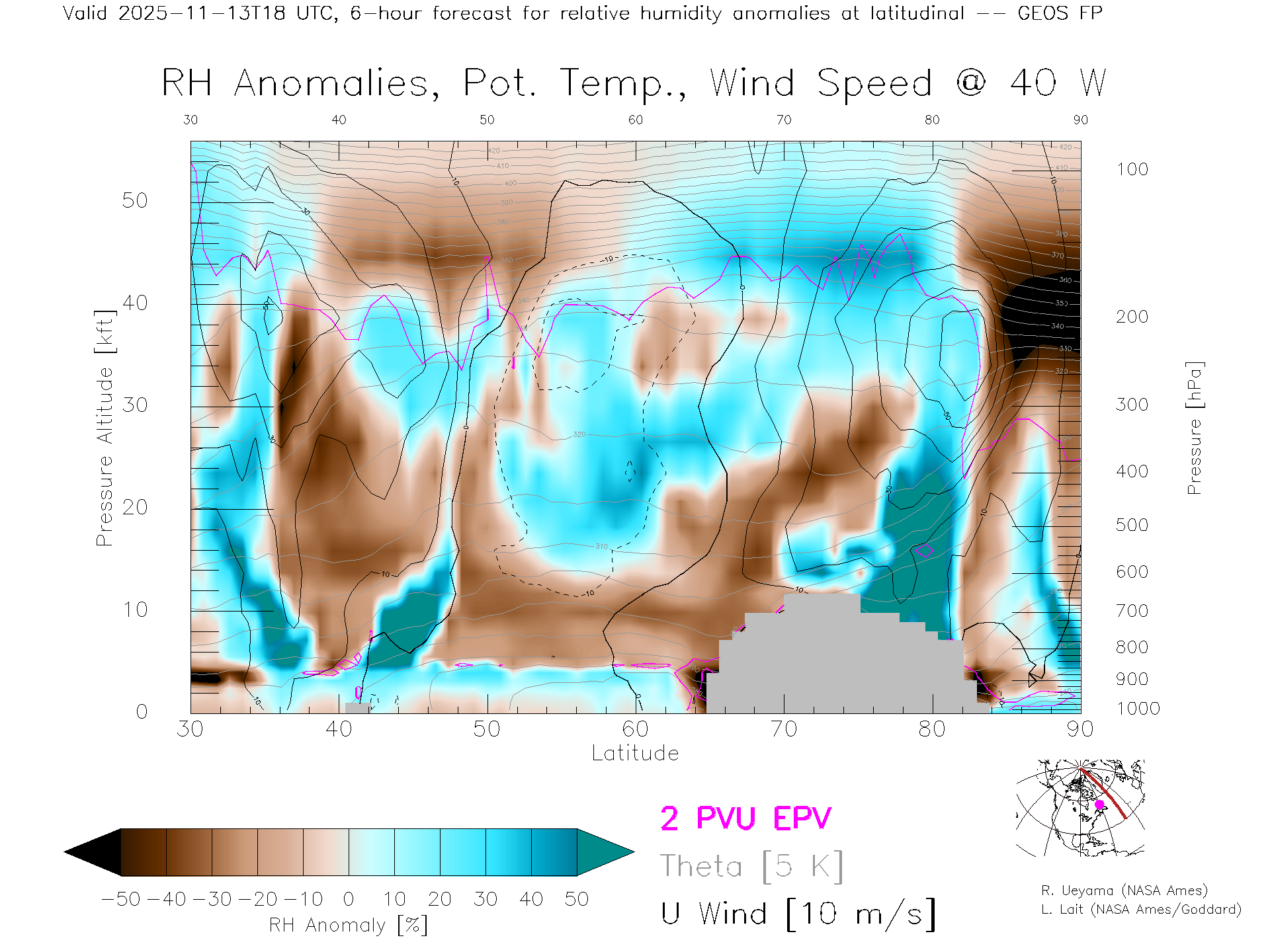 GEOS Forecast Rel. Hum. X-Section (40 W)