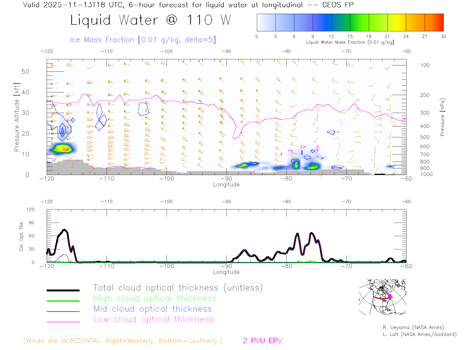 GEOS Forecast Cloud Water Content X-Section (50 N)