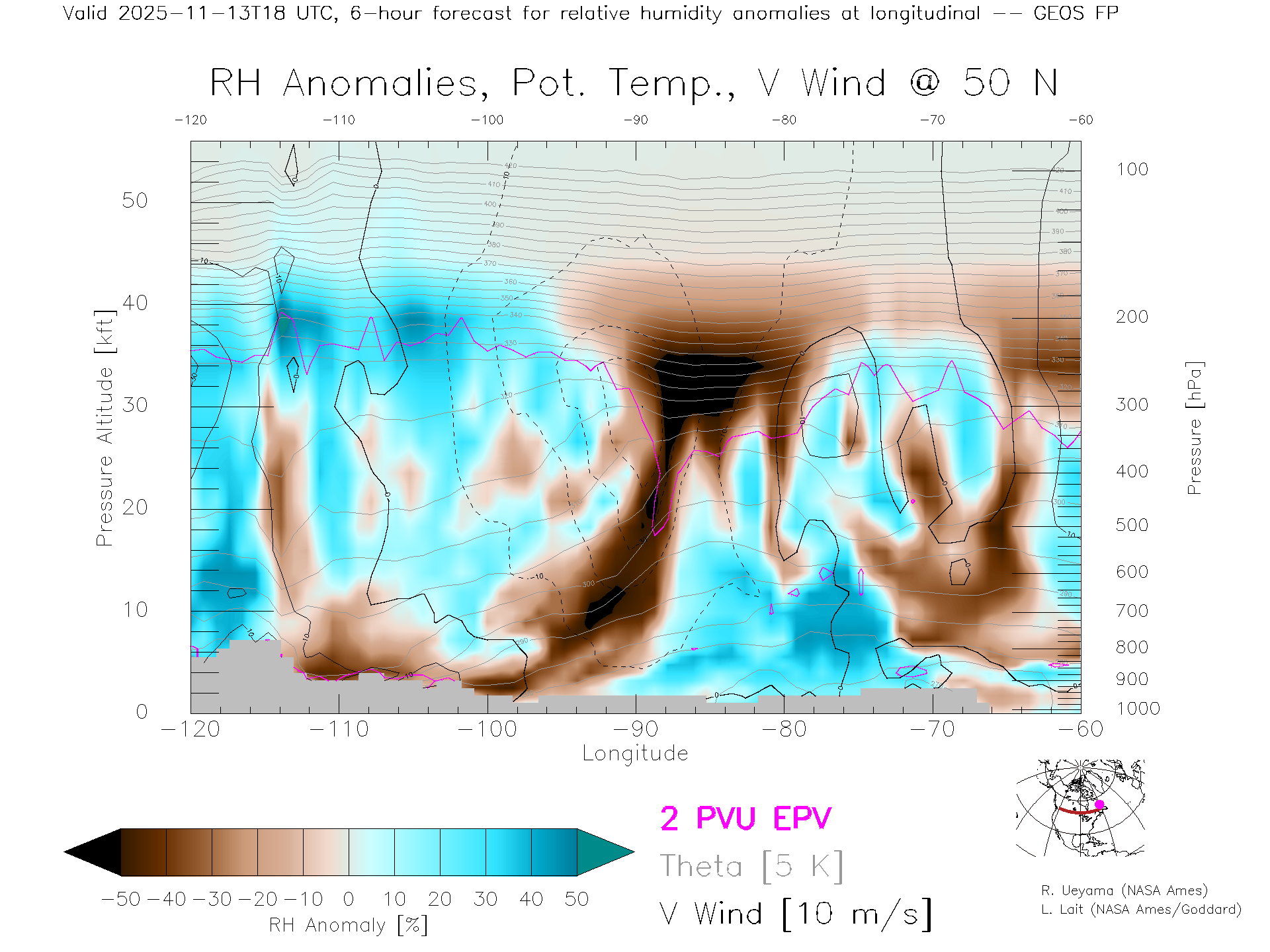 GEOS Forecast Rel. Hum. X-Section (50 N)