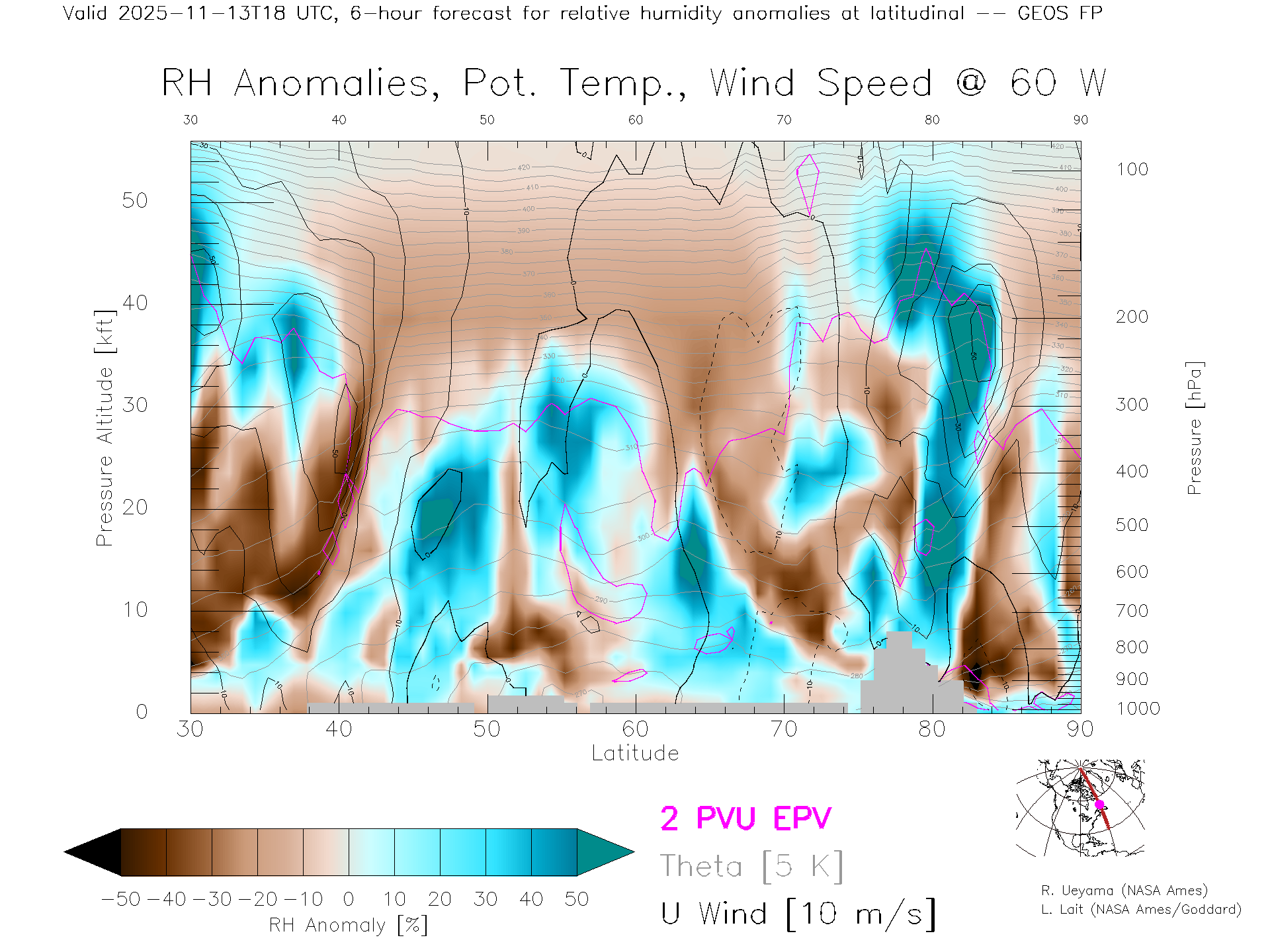 GEOS Forecast Rel. Hum. X-Section (60 W)
