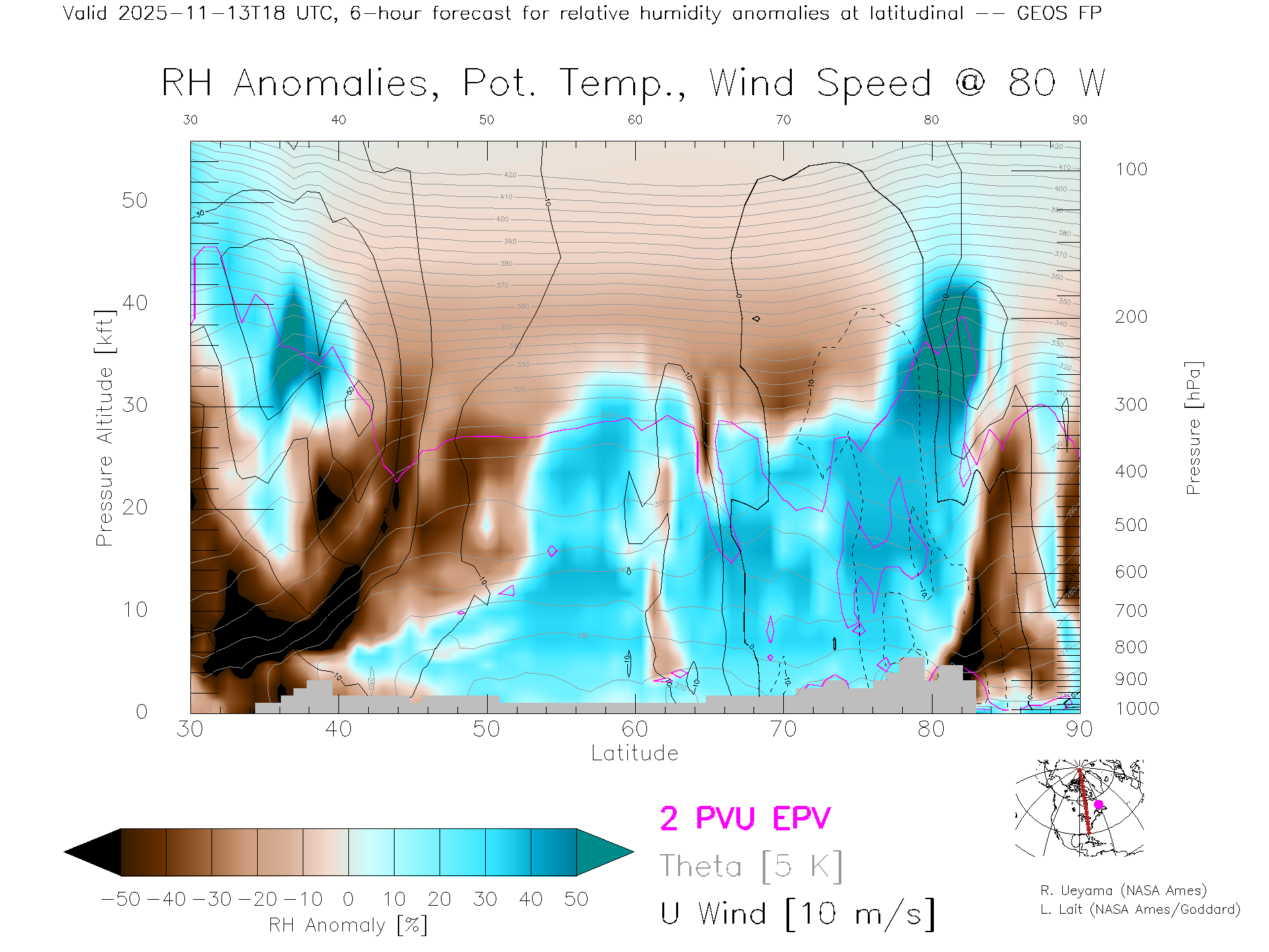 GEOS Forecast Rel. Hum. X-Section (80 W)