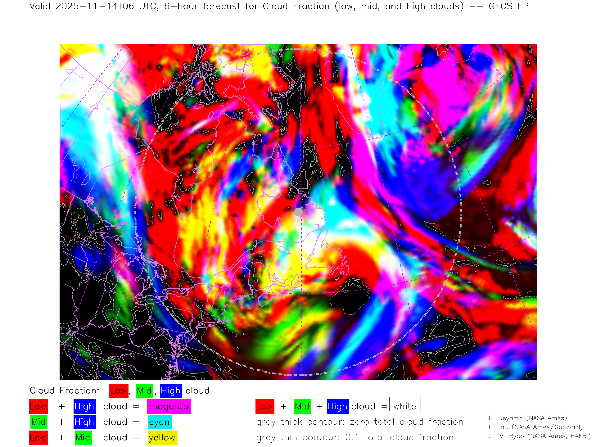 GEOS Forecast Low-, Mid- and High-level Cloud Fraction
