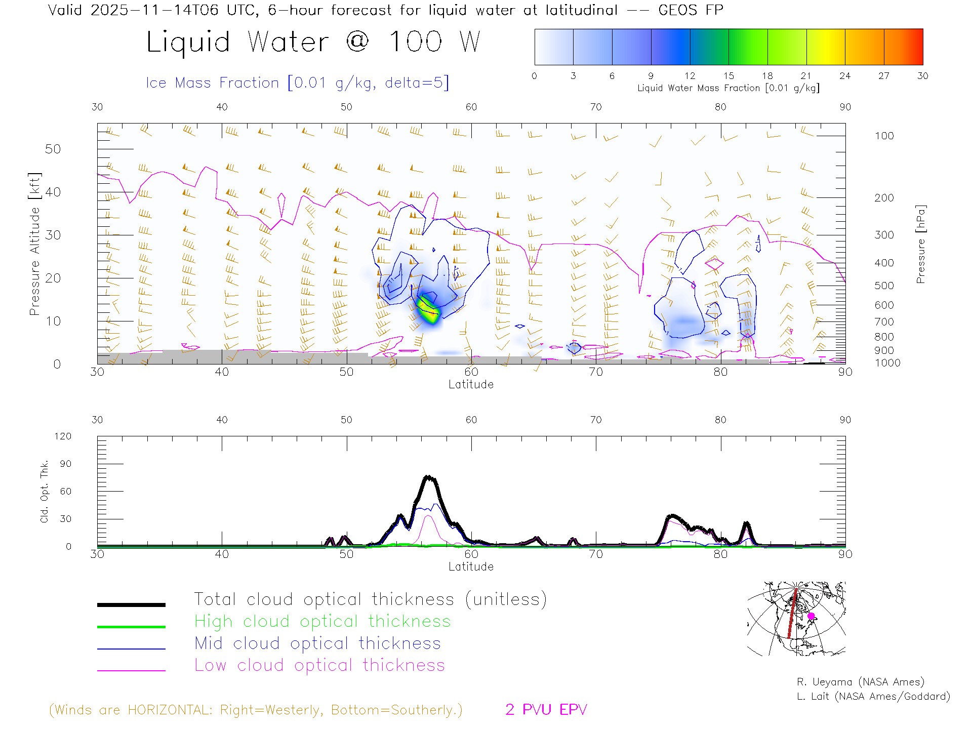 GEOS Forecast Cloud Water Content X-Section (100 W)